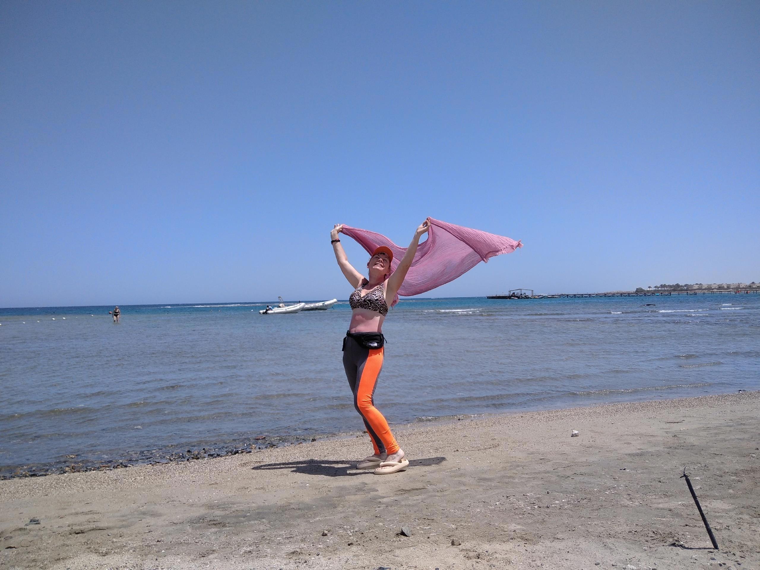А самое-то главное: мы же стопали пехом в бухту Абу-Дабаб!!! Прикинулись местными, ну, или полными чайниками, и пошли. А там вода как в ванне. И кораллы красоты невиданной. Скатика видела. Очаровашка. Сам серенький, полметра, не больше, спинка в синих пятнышках, а хвост длиннющий, как не метр. Фоток пока нету. Но! Сноркала уже без нарукавников. Вода держит сама. Ура!!!!