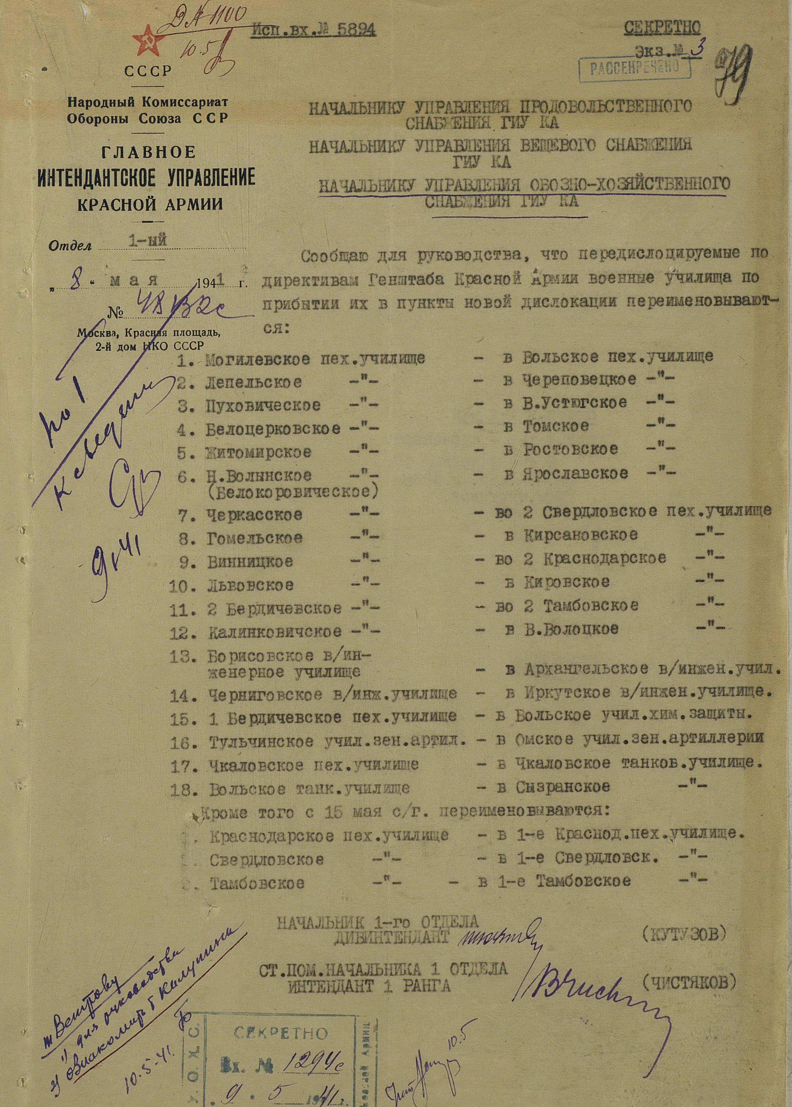 Перед самой войной из приграничных военных округов было передислоцировано 18 военных училищ. Вот их перечень: