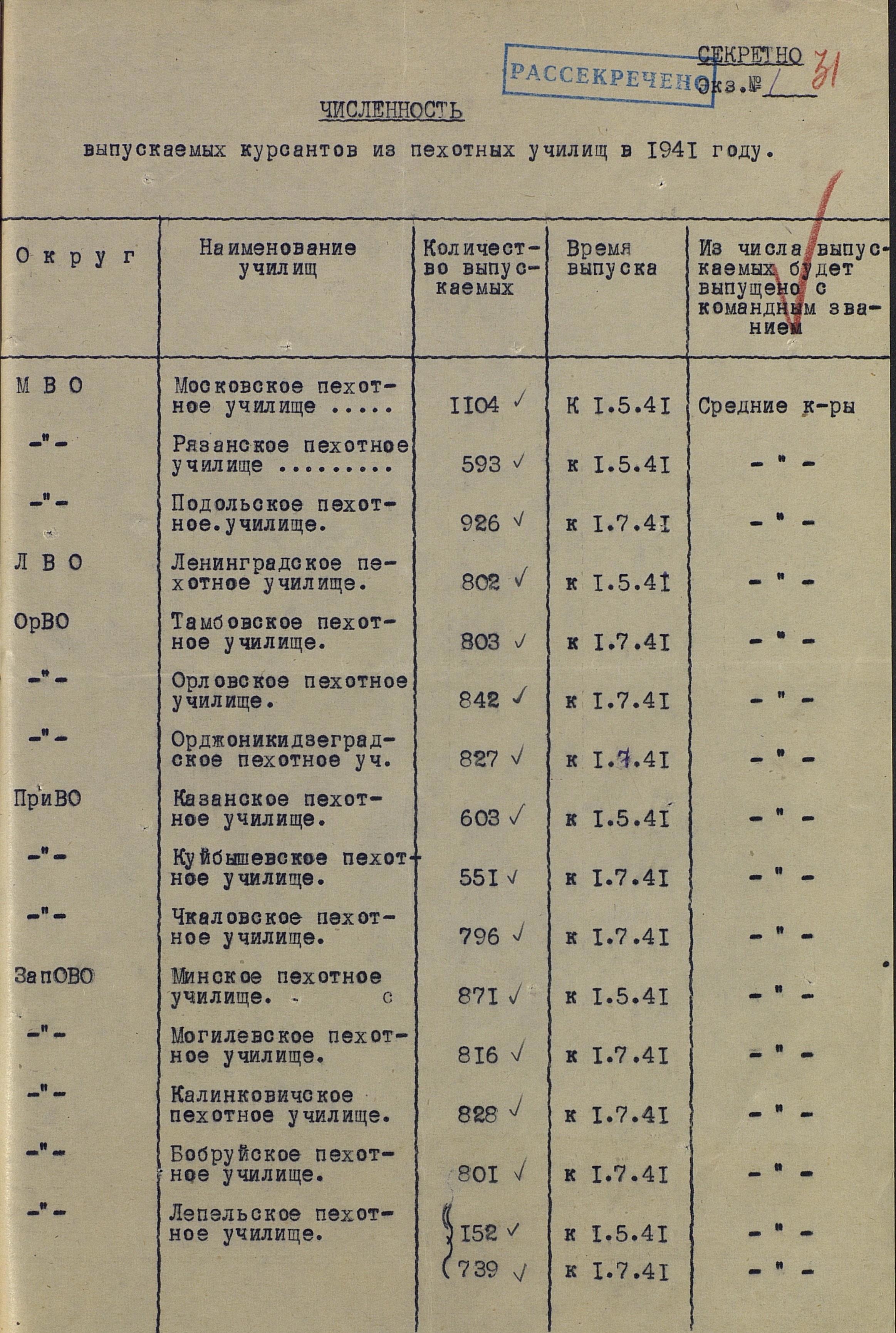 Сегодняшняя публикация носит скорее справочный характер, хотя и не претендует на сборник с полным перечнем Военно-учебных заведений (ВУЗов) Красной Армии в предвоенный период и в 1942 году. Бул уверен, что полный перечень учебных заведений давно уже есть в сети, так что сведения собирал «на всякий случай», для иллюстрации раздела «вещевое снабжение учебных заведений», если таковой будет когда-либо написан. И, конечно, интересно было знать количество лейтенантов, выпустившихся перед самой войной, а также сравнить места дислокации, количество ВУЗов и их возможности по подготовке комсостава после эвакуации в глубь страны.