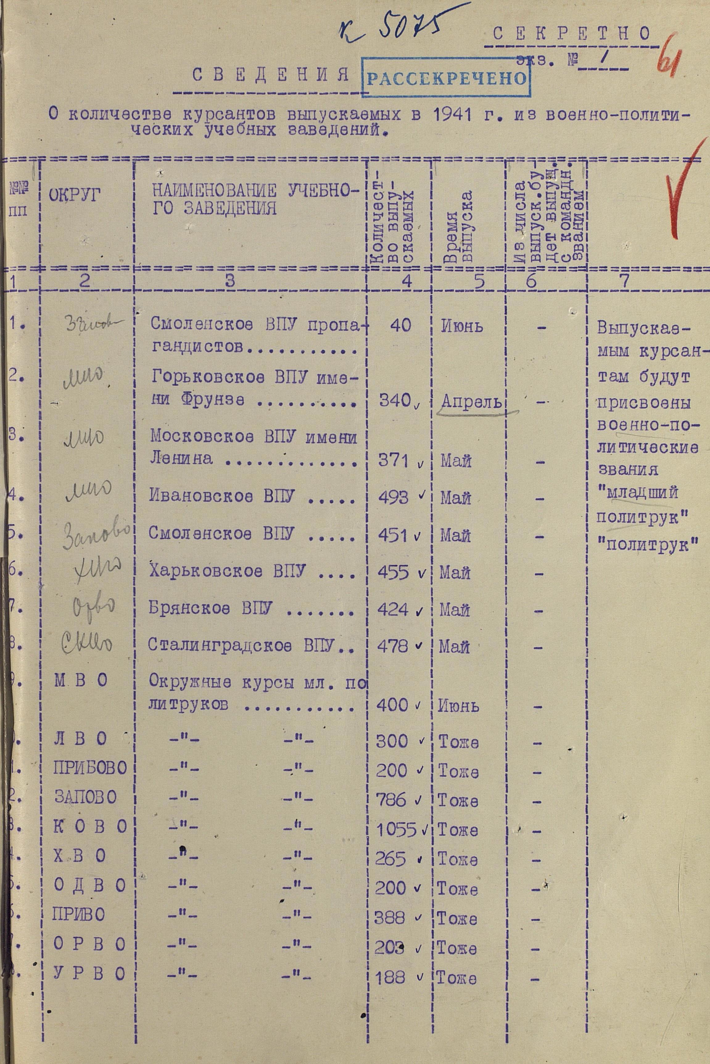 А перед войной военно-политический состав готовили в 9 ВУЗах и 20 окружных курсах младших политруков: