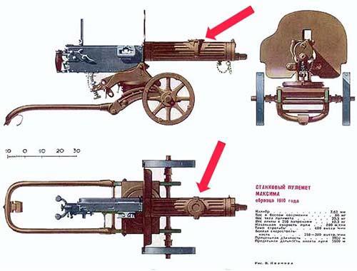 Был, и до сих пор еще кое-где есть на вооружении, пулемет с водяным охлаждением ствола по имени 'Максим' (у буржуинов, что характерно, он называется "Виккерс", но там нет так называемой "снежной крышечки в кожухе"*). То есть - ствол его заключен в резервуар с водой, на котором сверху есть специальная крышечка для долива воды. И когда пулемет стреляет, ствол, соответственно, нагревается, и вода его охлаждает, но, согласно законам физики, нагреваясь при этом сама. Ну, думаю, термин 'закипевший пулемет' слышали или читали все.