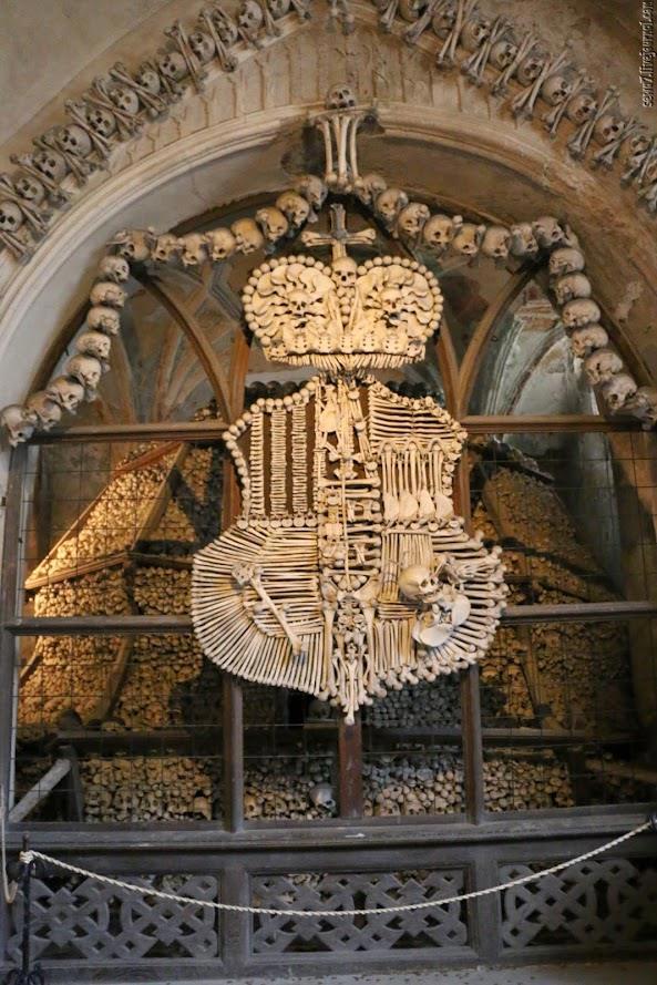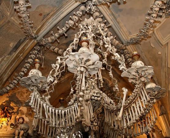 Более 40 000 человеческих скелетов было использовано для создания этого уютнейшего интерьера. Вместо того, чтобы пылиться в земле, бренные останки превращены в канделябры, гирлянды и даже в фамильный герб Шварценеггеров Шварценбергов. Кто бы мог подумать, что кости могут смотреться настолько стильно?