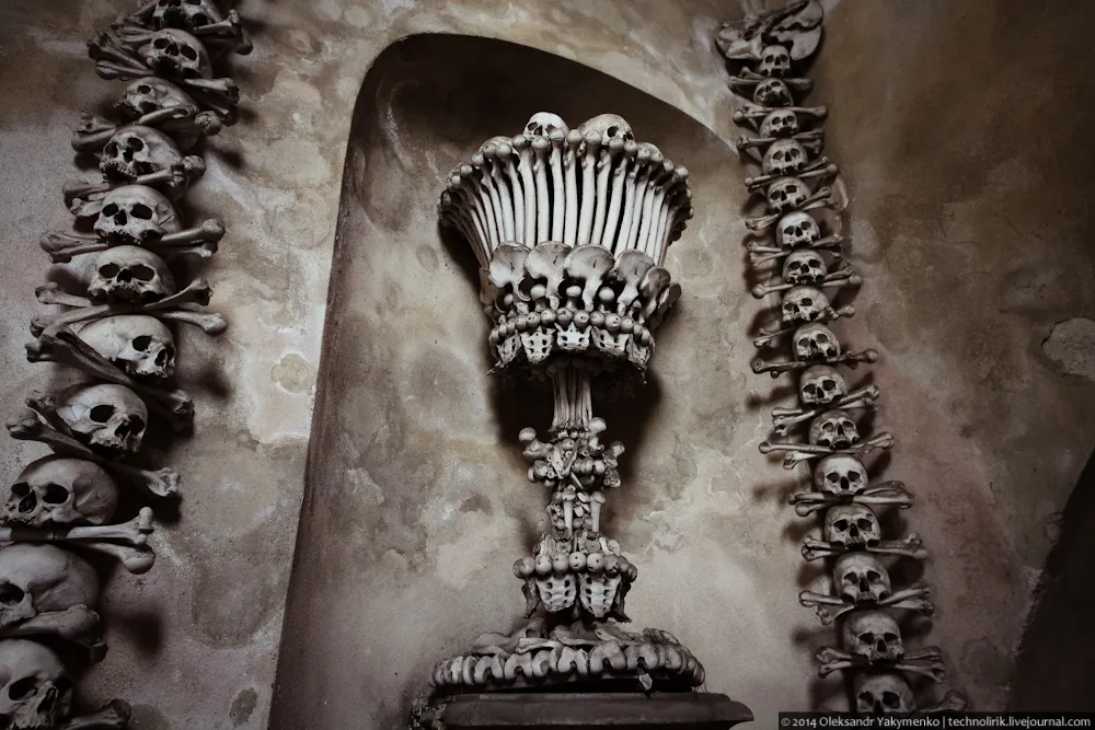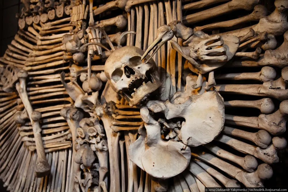 Часовня, украшенная человеческими останками... Не правда ли, возникает ощущение, будто дизайнером здесь выступал сам Сатана? Атмосфера — как в старых фильмах ужасов...