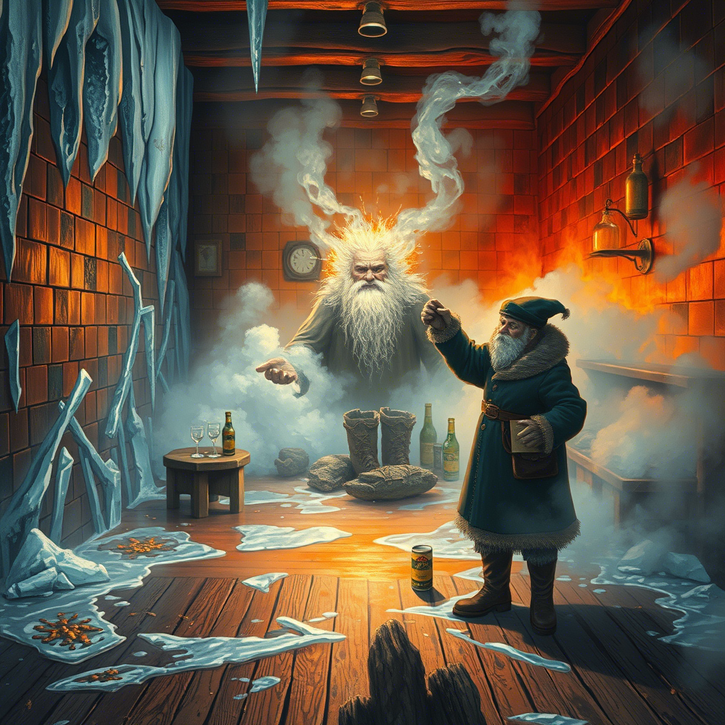 В городской бане пропали все веники, а температура скакала от +50°C до -10°C. Виновником оказался банник Тихон, обидчивый дух парной. «Хотел повеселиться», — оправдывался он. После переговоров с хозяйкой Тихон пообещал больше не морозить стены, но в ответ потребовал, чтобы ему больше не запрещали поддавать пар пивом.