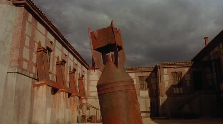 Сеньор дель Торо с ходу рисует перед нами весьма гнетущую, но колоритную атмосферу приюта и быта его сотрудников и питомцев. Одной из главных достопримечательностей приюта – это сброшенная авиабомба. Огромная, зловещая по своей сути орудие массового уничтожения (сколько-то там десятков килограммов тротила), она впилась в брусчатку во дворе приюта, всей своей тяжестью вонзившись в сухую почву под ней. К счастью, бомба так не взорвалась. Пока что.