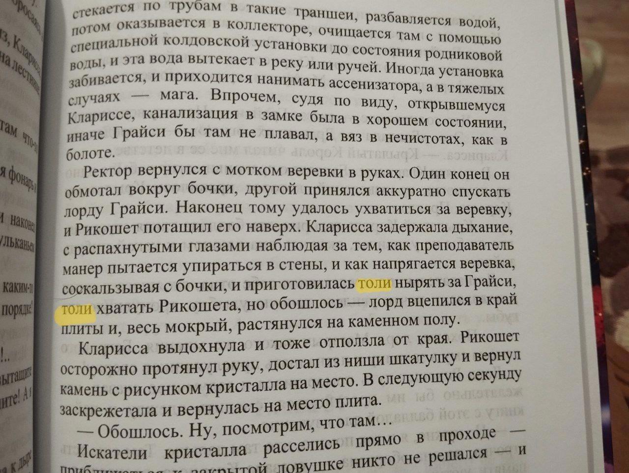 Мы даже не читаем - просто листаем… Но почему «толи»? Почему предложения без пробелов? Почему всё это выходит на бумаге в одной со мной Вселенной?! Что это за люди на форзаце? Что тут редактировала Анастасия Токмакова? И почему Софа Хартманн (не зря стесняется своего имени) не стесняется предлагать в Сети свои услуги? Тут нет ни работы редактора, ни работы корректора. Откровенная халтура и позорище…
