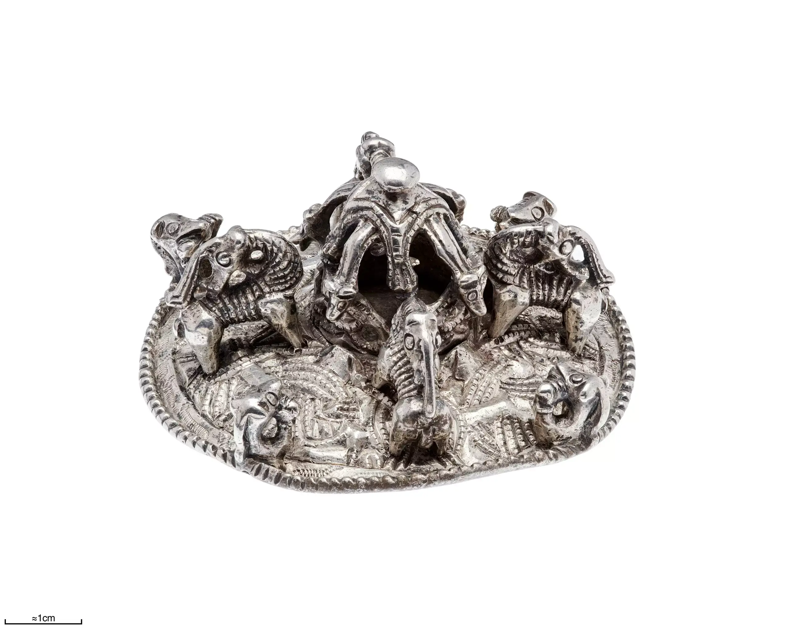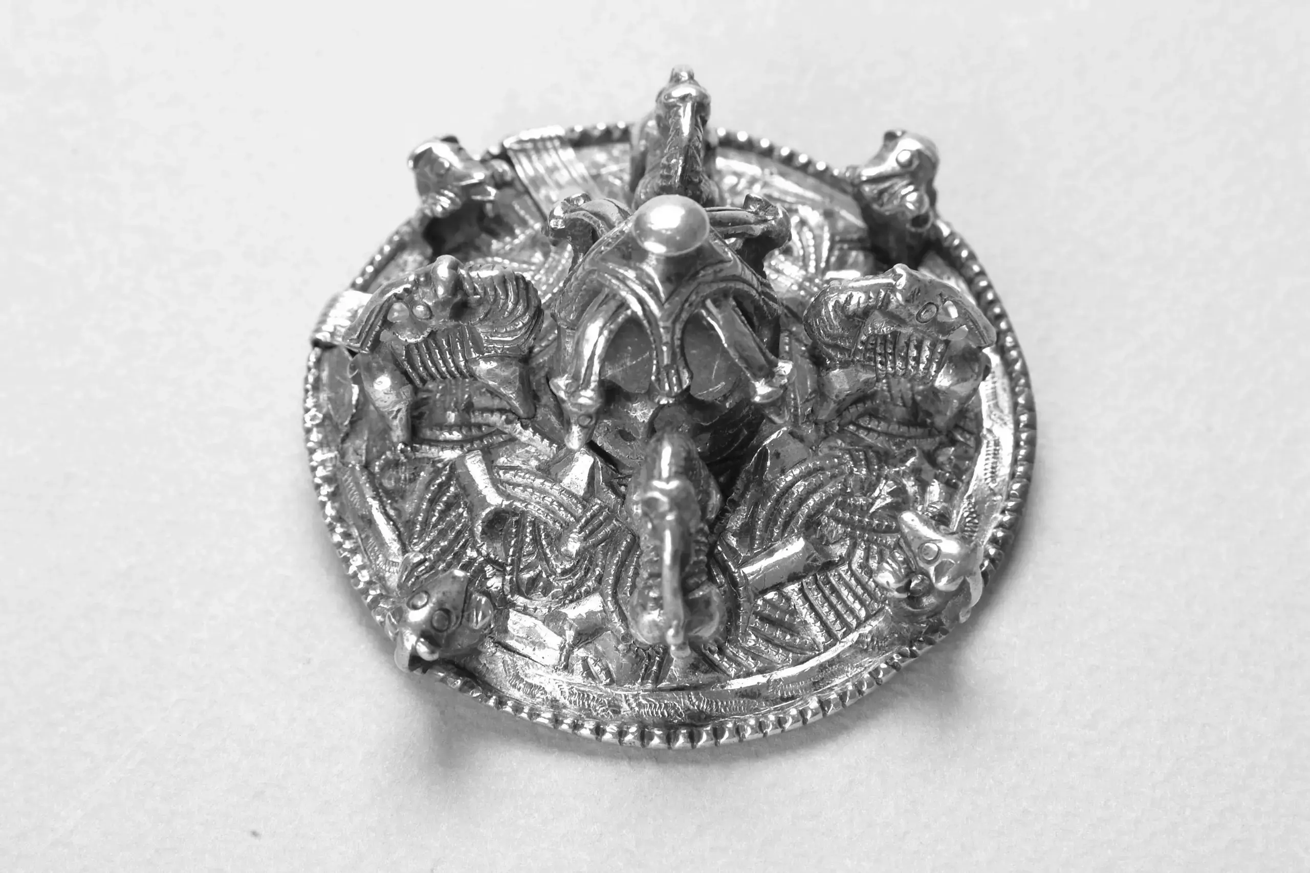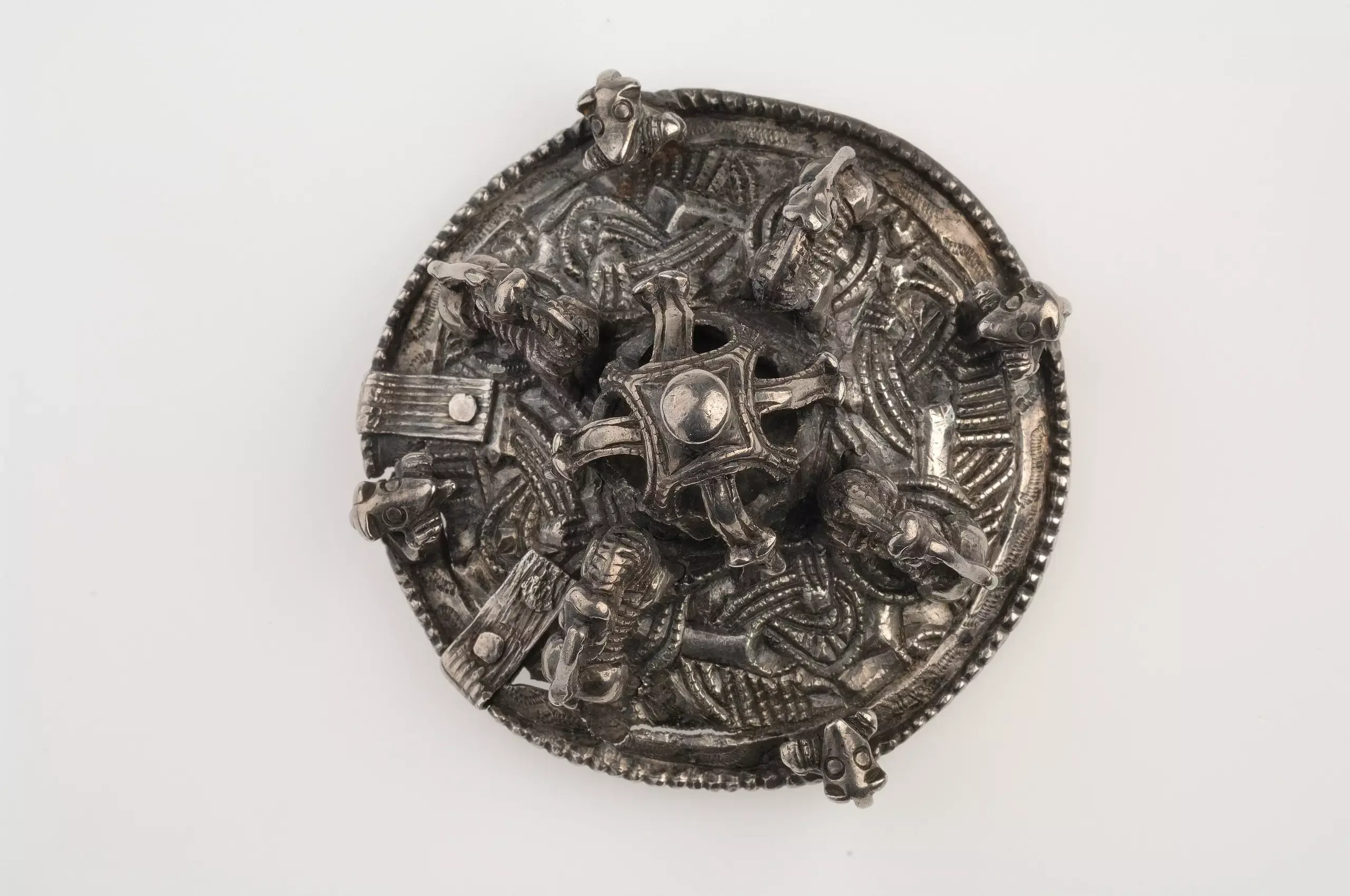 На фото ниже — круглая серебряная фибула, обнаружена ещё в 1791 году в Швеции (Старгорден, Вэсбю, Уппланд), контекст находки неизвестен. Датировку найти не удалось.