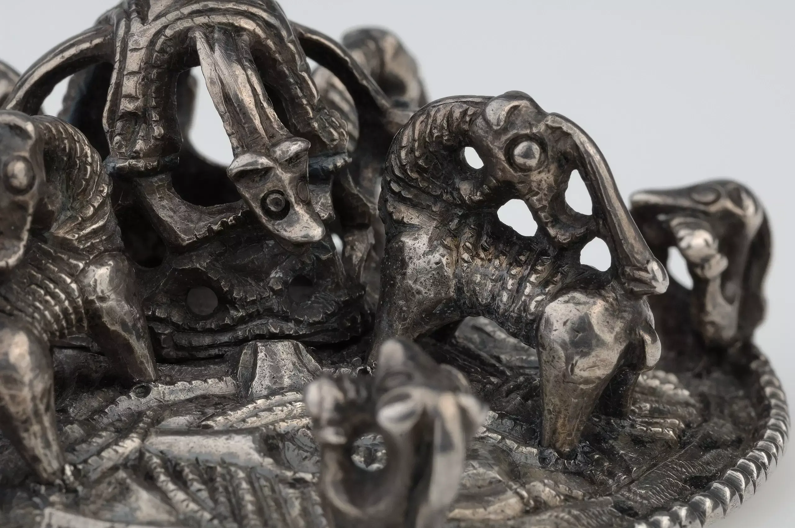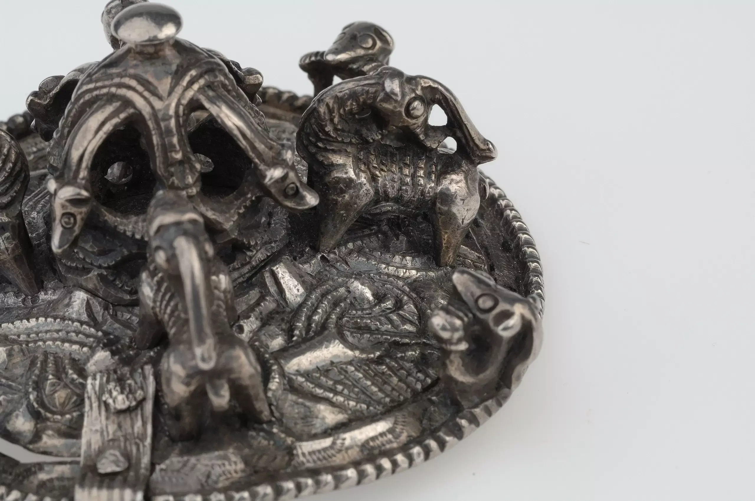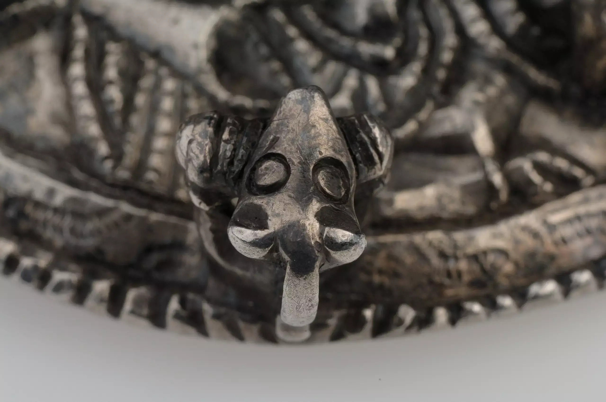 На фото ниже — круглая серебряная фибула, обнаружена ещё в 1791 году в Швеции (Старгорден, Вэсбю, Уппланд), контекст находки неизвестен. Датировку найти не удалось.