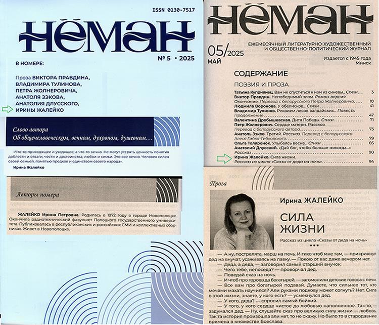 Шла я к ней долгие 9 месяцев. И вот результат: один из моих сказов "Сила жизни", из серии "От деда на ночь", опубликован в ежемесячном русскоязычном литературно-художественном и общественно-публицистическом журнале "Нёман" Союза писателей Беларуси, в №5 май 2025 г.