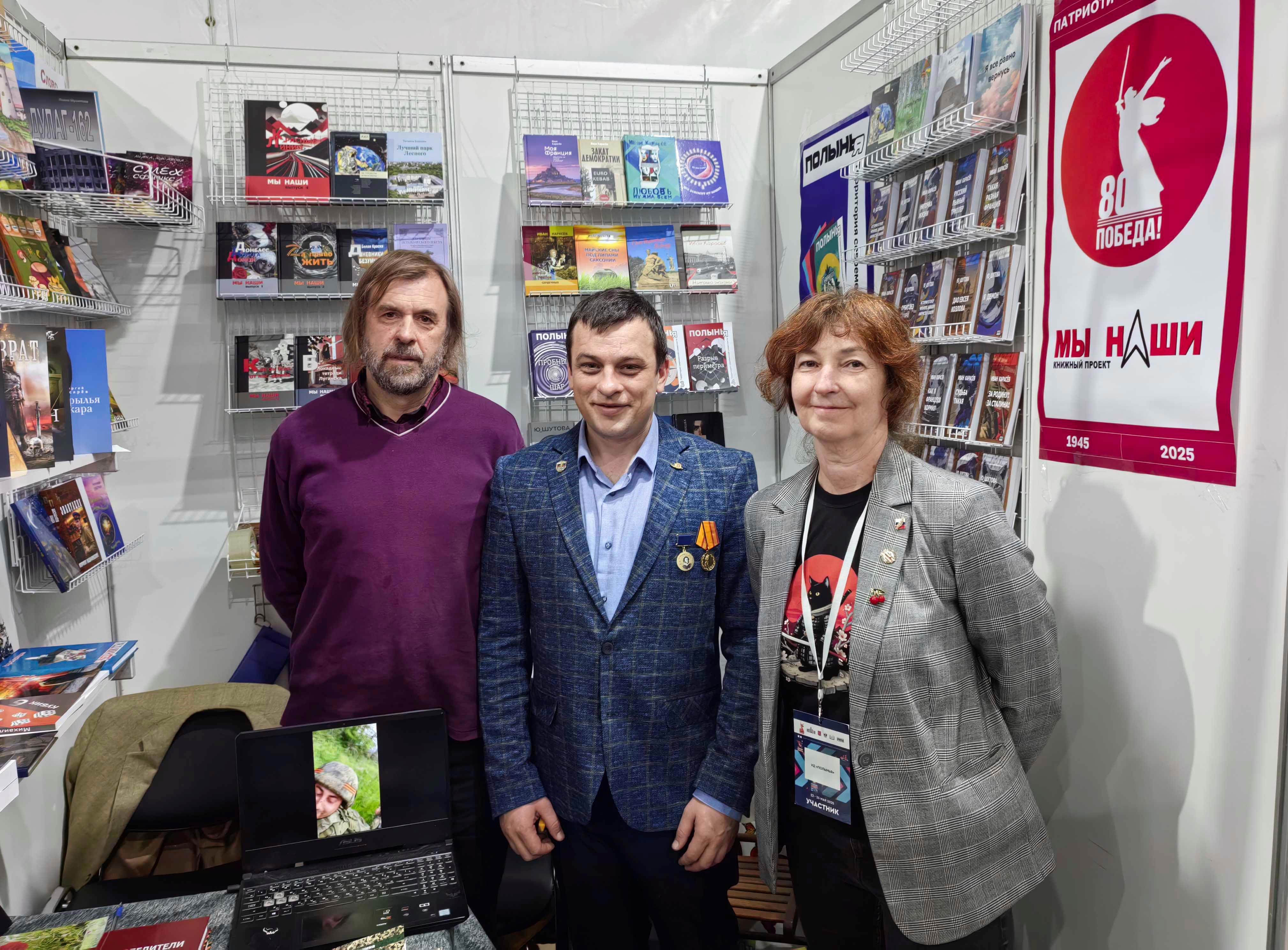 Но я не расстроился, в тот день у меня были другие цели. Я посетил стенд своих друзей-писателей и по совместительству издателей – чету Карасёвых (Иван Карасёв, выпускающий редактор ИД «Полынья» и альманаха "Мы наши". И Юлия Карасёва - главный редактор альманаха «Мы наши» и ИД «Полынья» по совместительству). Ребята делают великое дело – организуют мероприятия, выпускают книги и сборники, посвященные СВО и защите родины (Вернисаж «Время Z», сборника рассказов «Zа право жить» - стихи и проза бойцов спецоперации). Приглашаю всех неравнодушных людей посетить стенд ИД «Полынья» в павильоне С, место 14. Напомню, Книжный салон пройдет с 22 по 25 мая включительно на Дворцовой площади.