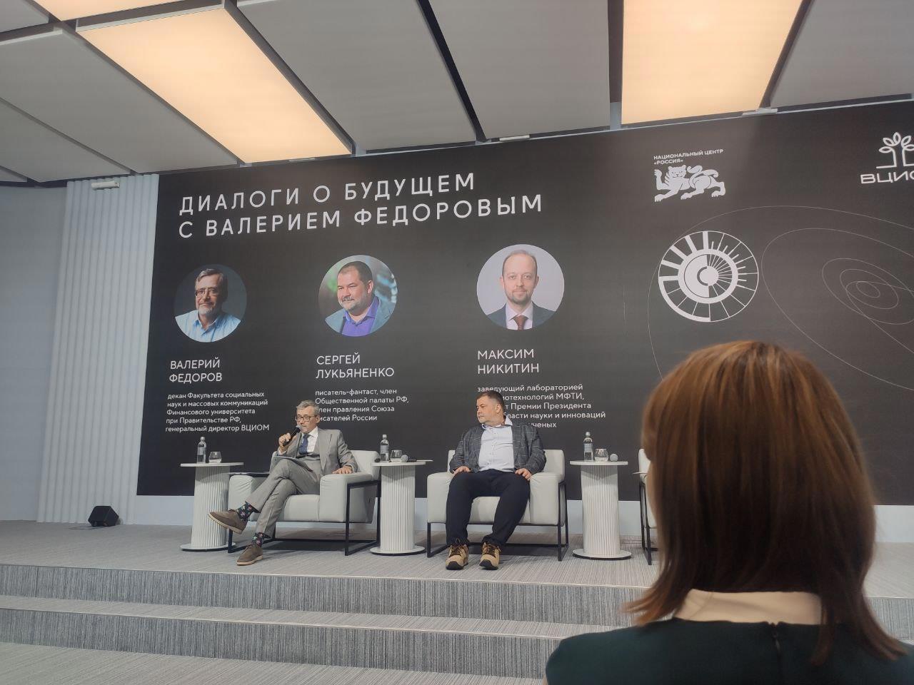 Вот примерно с таким нарративом и проходило это мероприятие – о чем мечтать современному человеку и к чему стремиться? Да, модератор, Валерий Федоров, периодически пытался нагнать страху по тем или иным темам – что скоро человечество вымрет, роботы нас захватят, экологическая обстановка окончательно сколлапсирует, и в общем хана нам, дорогие товарищи, а вы как считаете? Но Сергея Васильевича и Максима Никитина ему к этой идее склонить все-таки не удалось.