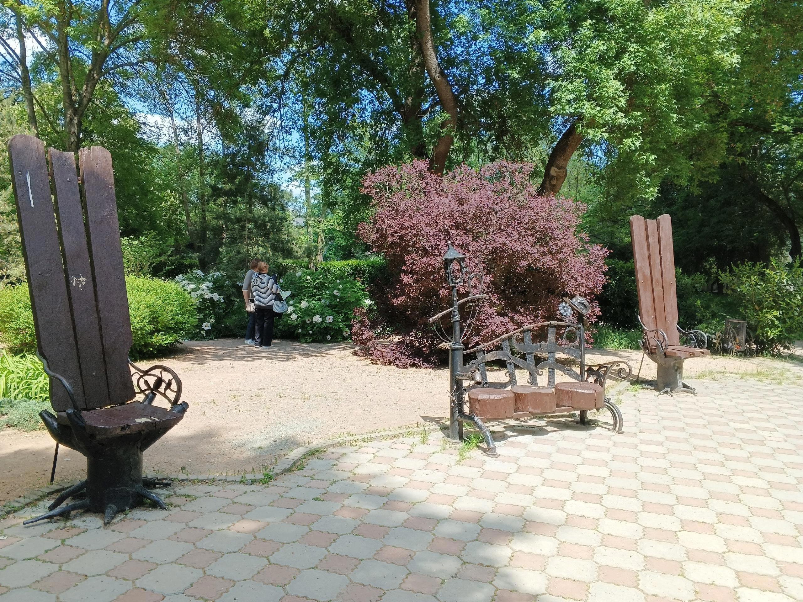 Центральным украшением сквера являются кованые скамьи для отдыха. Надо сказать, в Крыму, года эдак с 2005 начался бум на украшение скверов, парков и улиц коваными скульптурами.