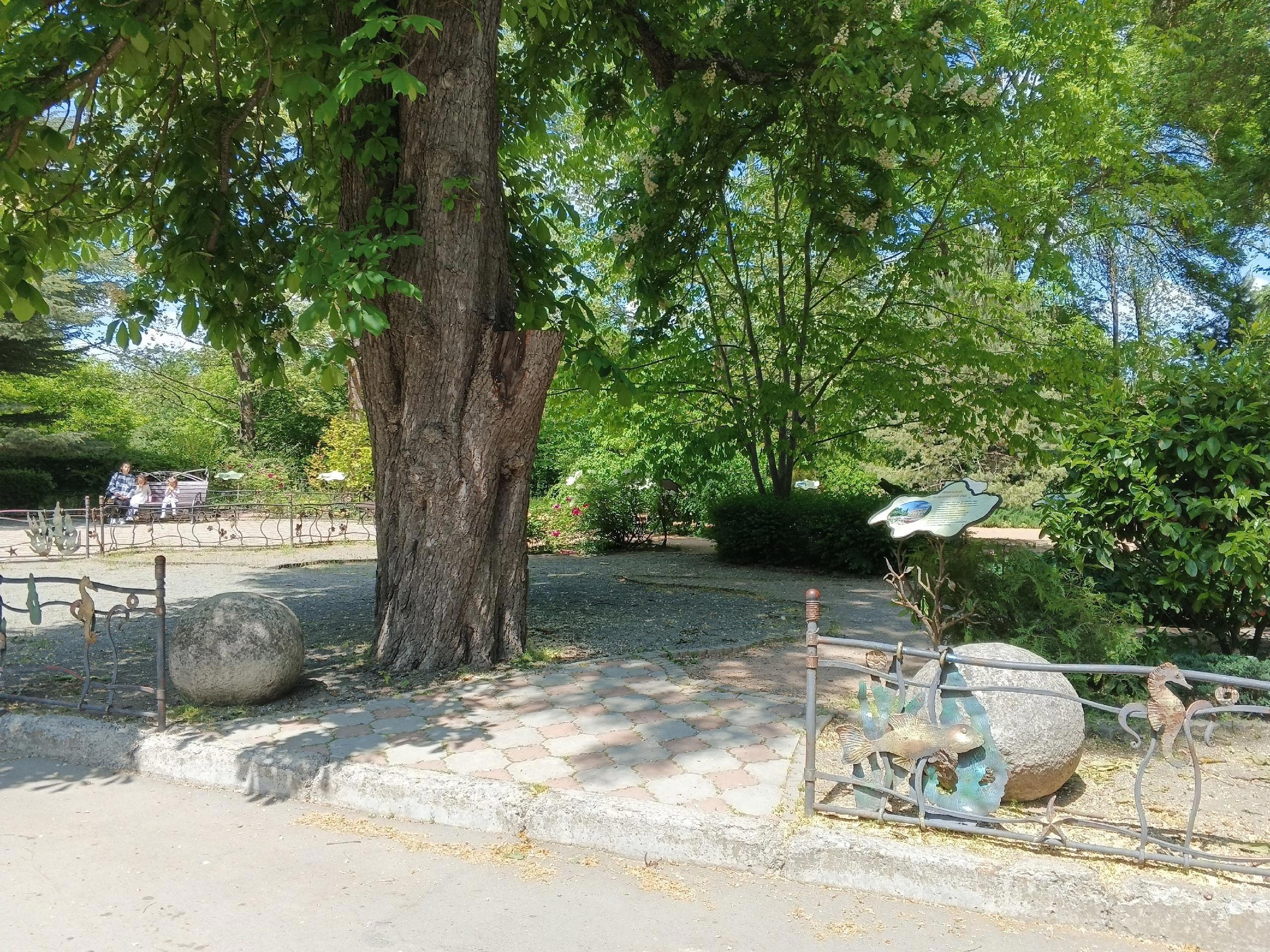 Кстати, эти два шара кочуют по парку уже давно. Их привезли в парк в шестидесятых, чтобы украсить вход в административное здание. Но там они не прижились и их регулярно передвигают, украшая то одно, то другое место. Но с 2011 года они лежат здесь, и, возможно, здесь и останутся.