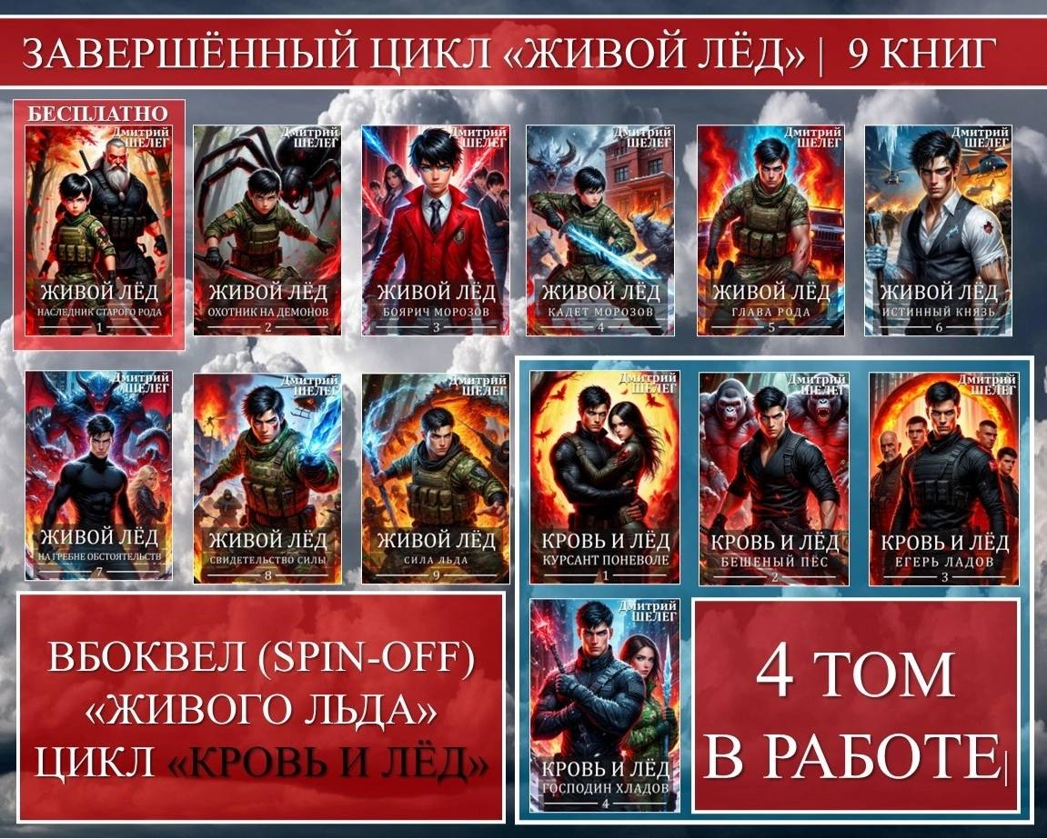 Автор: Анатолий МатвиенкоОткрыл для себя серию "Живой Лёд" земляка Димы Шелега. Рекомендую. Кто не читал его романы, стоит начать с этого.