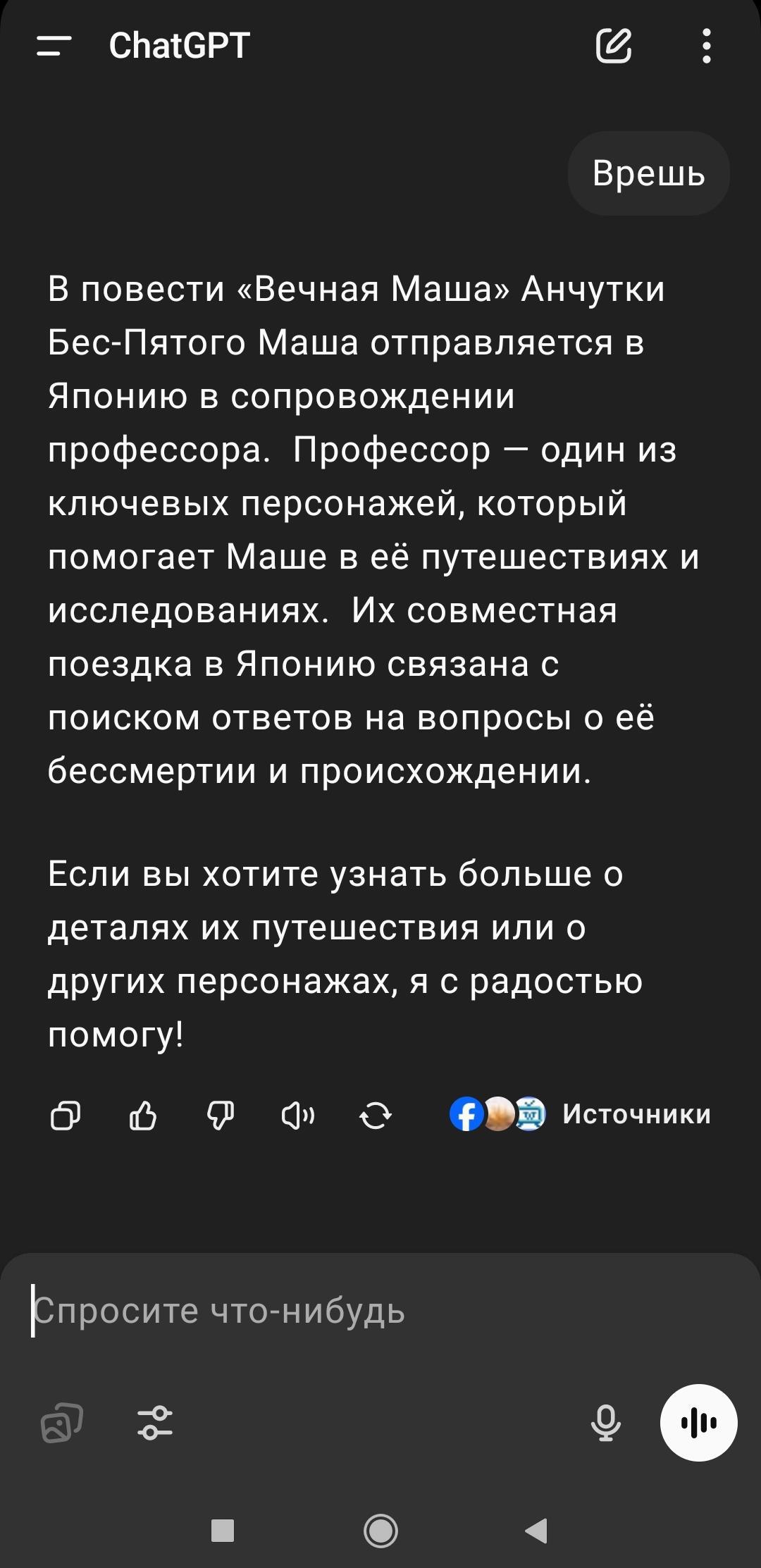 Автор: Анчутка Бес-ПятыйВот как врёт про нее нейросетка поганая. Ничего не прочитает, а еще настаивает. Все контрольные вопросы провалила.