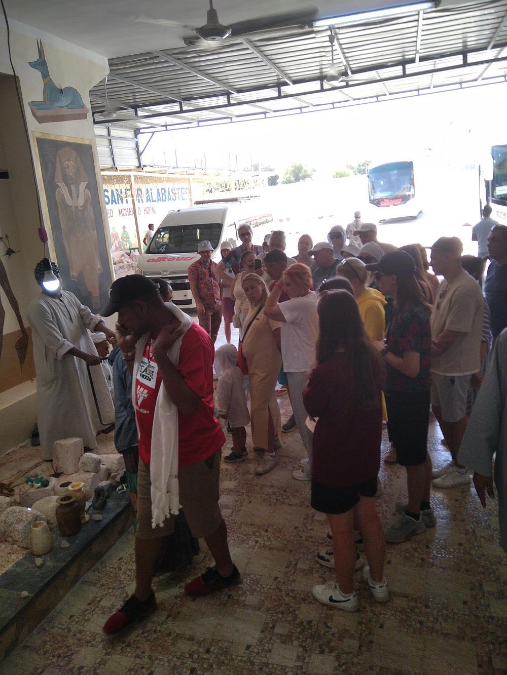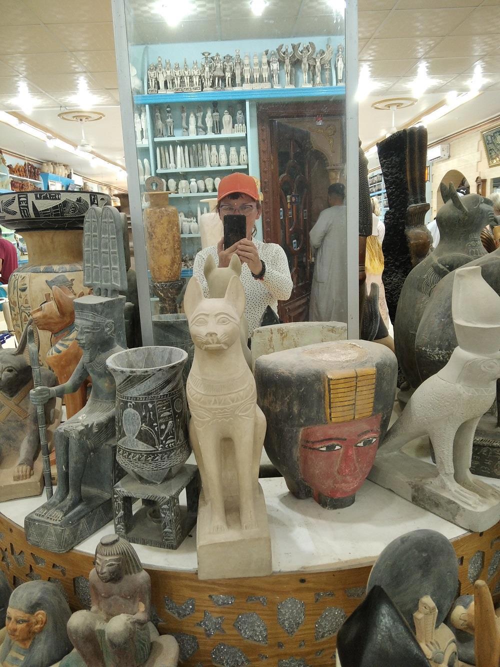 А, еще интересно. Недалече от «храма царицы» (вот на мавзолей дедушки Ленина просто жутко смахивает, честно) замечаю какие-то глиняного вида постройки. Уж никак не египетского, а, скорее, эфиопского стиля. Гид радостно отвечает на мой вопрос, что это, да, ребята-археологи приезжали, работали тут и…для себя (!) кое-что построили. Ага, красиво получилось. Дальше тоже что-то интересное. И, кстати, новоделом это «что-то» совсем не выглядит. А вот туда-то нас таки и не повели… Только не смешно это все на самом деле. Вспоминается безвременная кончина многих ученых-«альтернитивщиков». «Не туда полезли?» «Не там и не то копали?» «Не те выводы делали?» Грустно это. Ну, да ладно. А вот после храма тети Хатшепсут мы побывали на базаре и в невероятно живописном магазинчике сувениров.