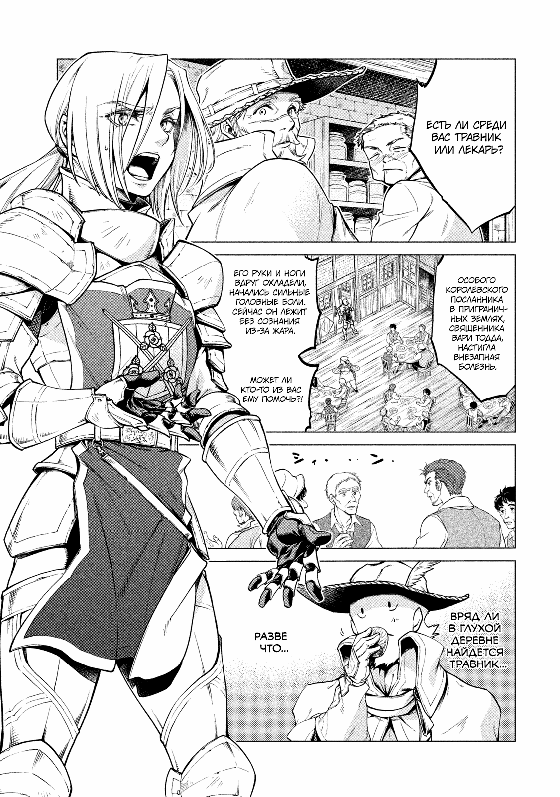 И вот автор манги "Старый рыцарь из приграничных земель" тоже бессердечен. У этой дамы-рыцаря, охраняющей королевского посланника, с которым встречается герой, даже имени в тексте нет! А ведь она просто очаровательна. ^_^ Хотя отмечу, что это редкая манга где мне даже визуально прям очень нравится мужской протагонист. Дед-рыцарь-пенсионер харизматичен донельзя. И такой няша, что о его росте за два метра и умении гнуть подковы пальцами в таком возрасте постоянно забываешь.