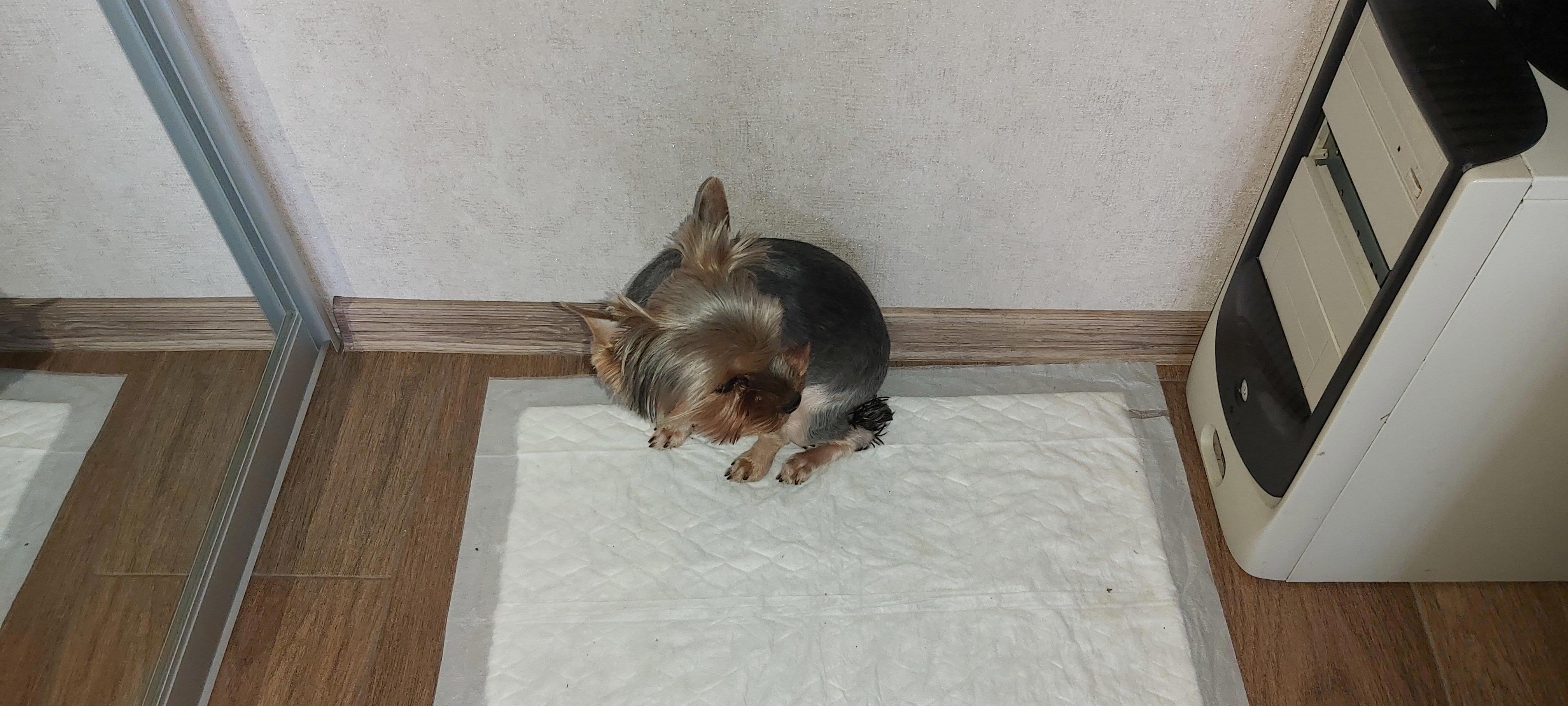 Собакин устроил ай-яй-яй, нагадила, я тока в её сторону посмотрела, как она сама без слов "ата-та", поджав хвост, пошла и села в угол, наказана...