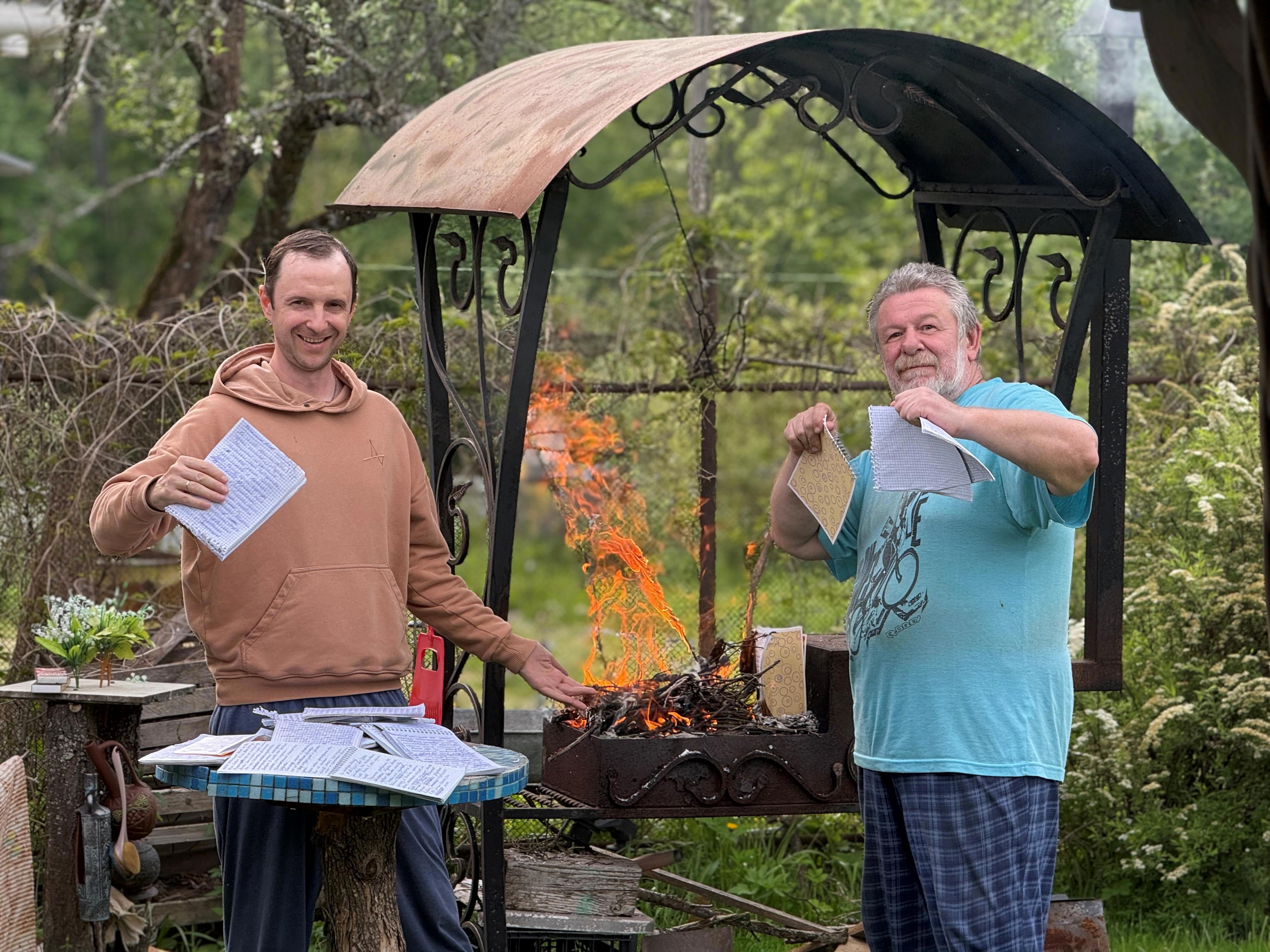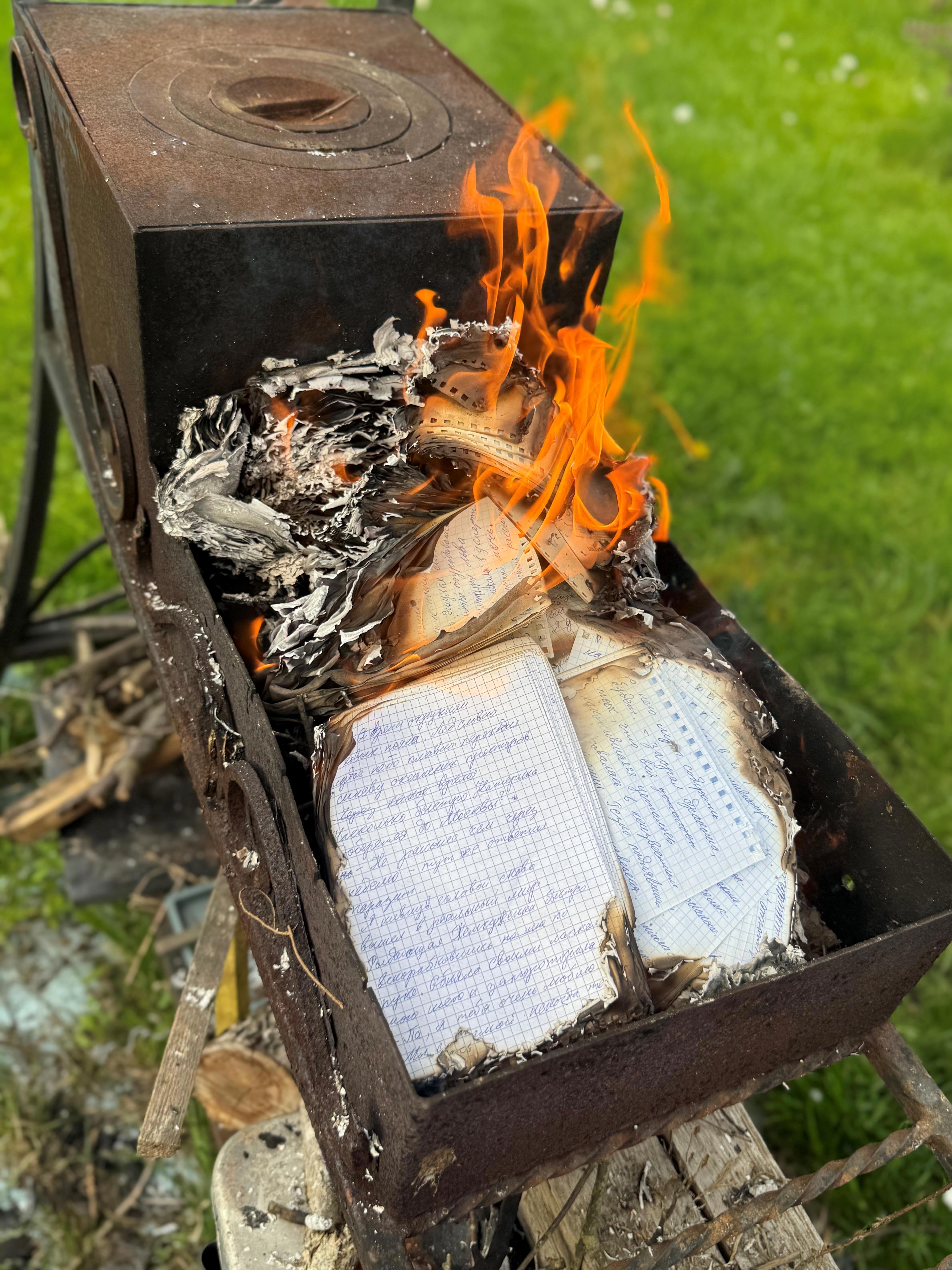 Писали мы серию всю зиму от руки и сегодня торжественно сожгли каждую запись.