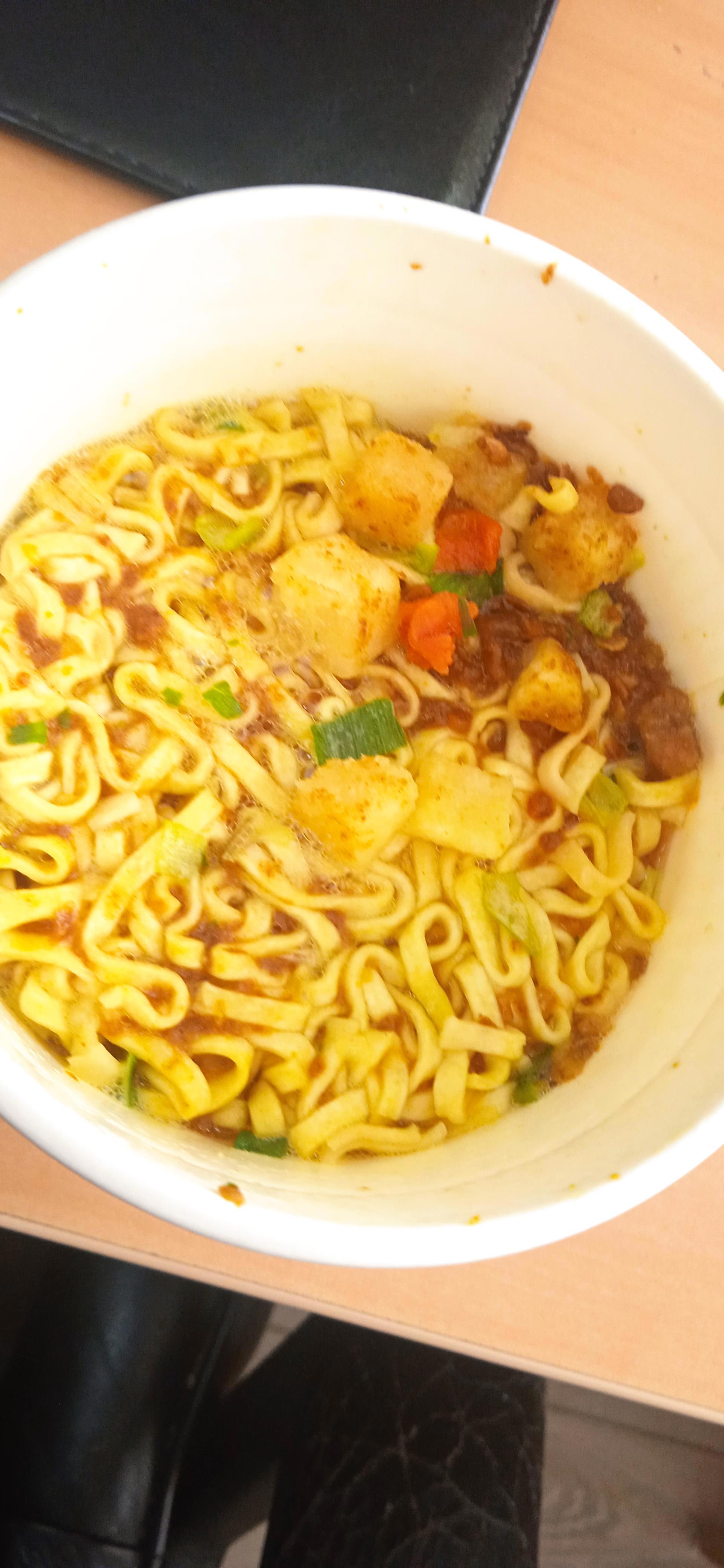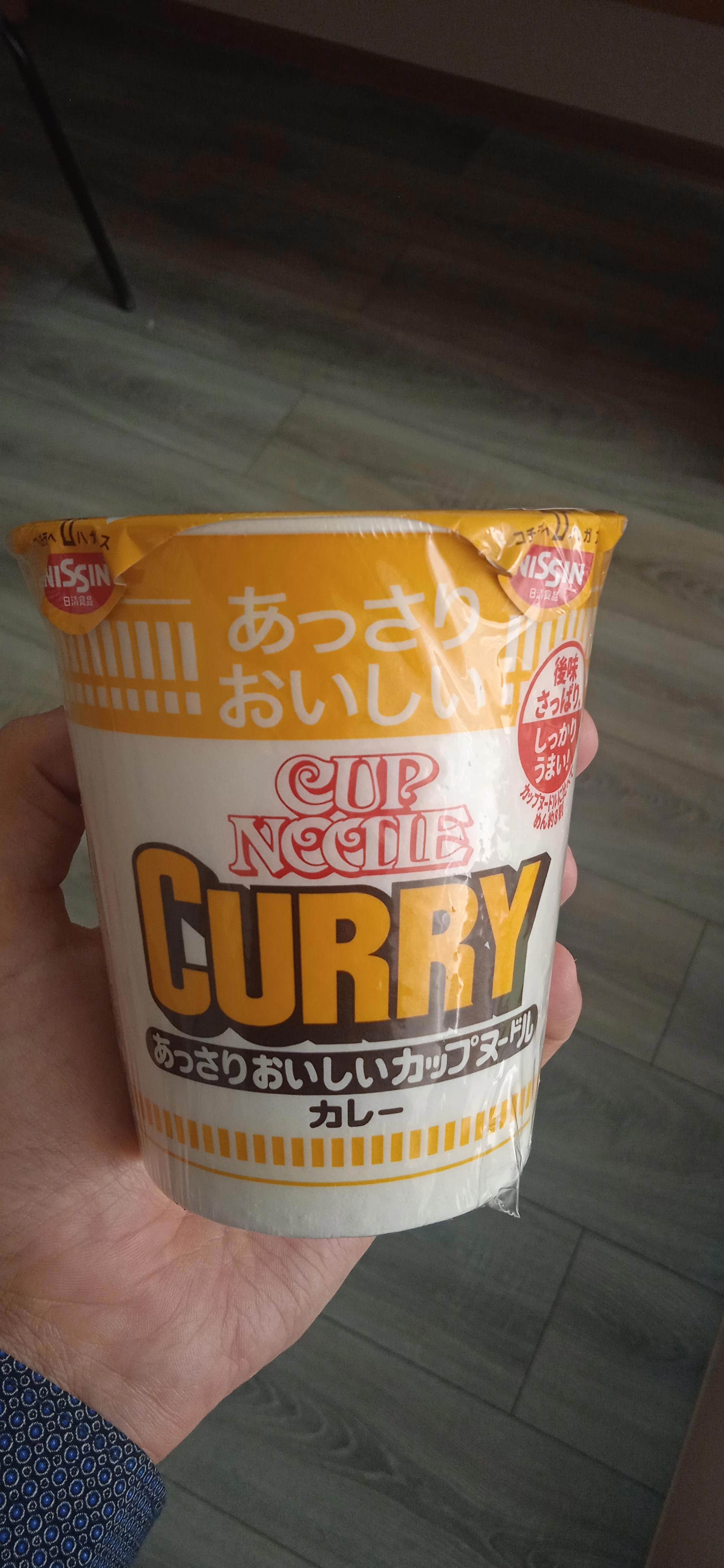 Запах качественный, ноздри радуются. От лапши то есть. Бульон терпкий, но допивать не решился. Правильно сделал, ибо на бумажном стакане остались кислотно-жëлтые карри разводы.