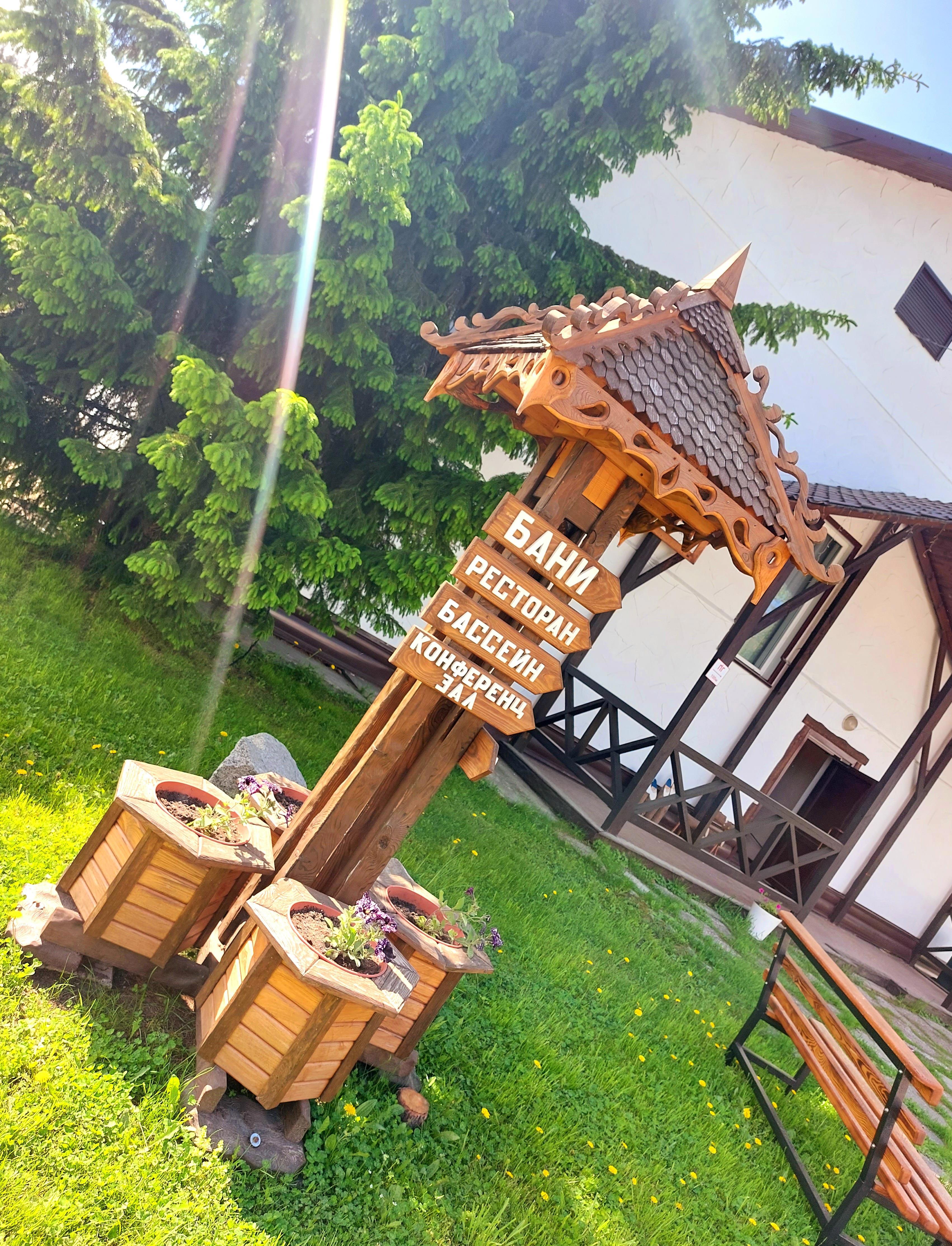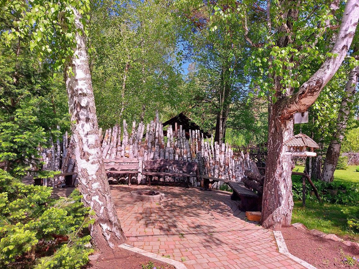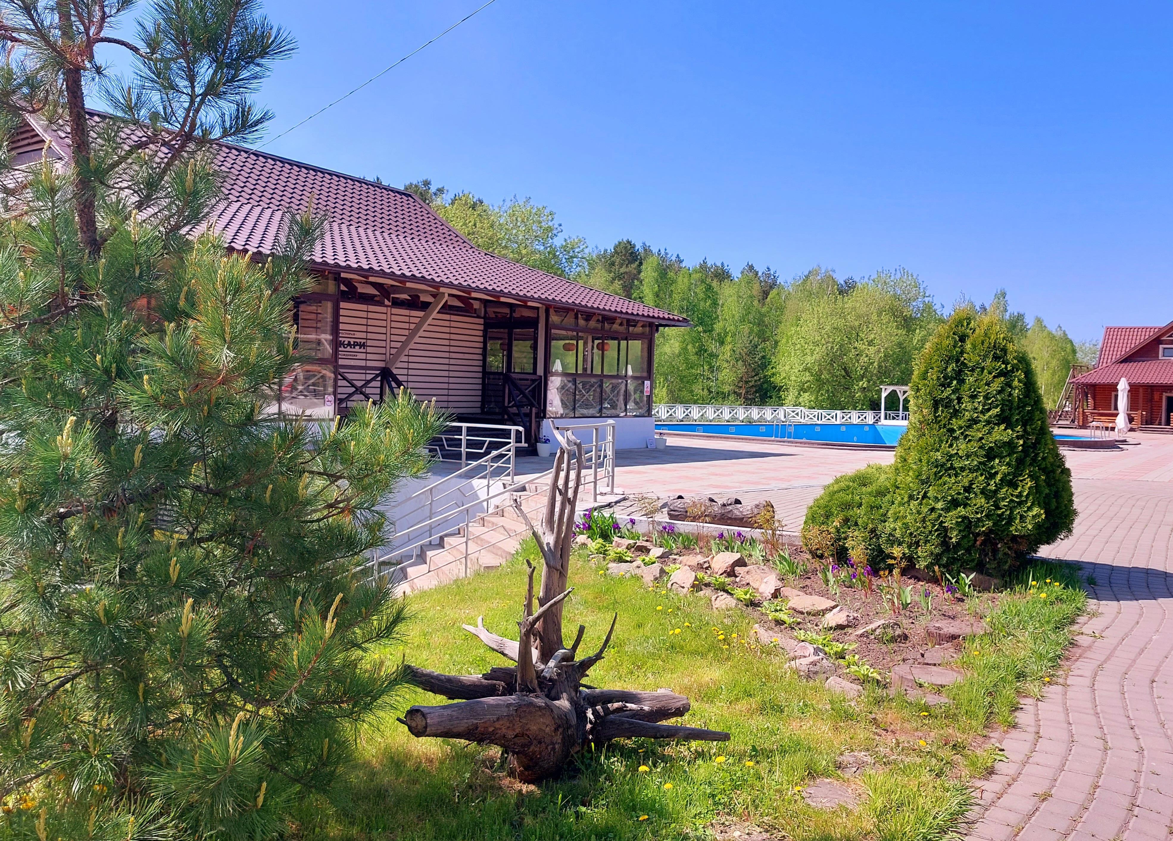 Нынче многое изменилось: территория приросла новыми арт-объектами, расцвела пышными цветниками, готовится к летнему купальному сезону большой бассейн, даже административное здание активно ремонтируется, в ожидании новых туристов...