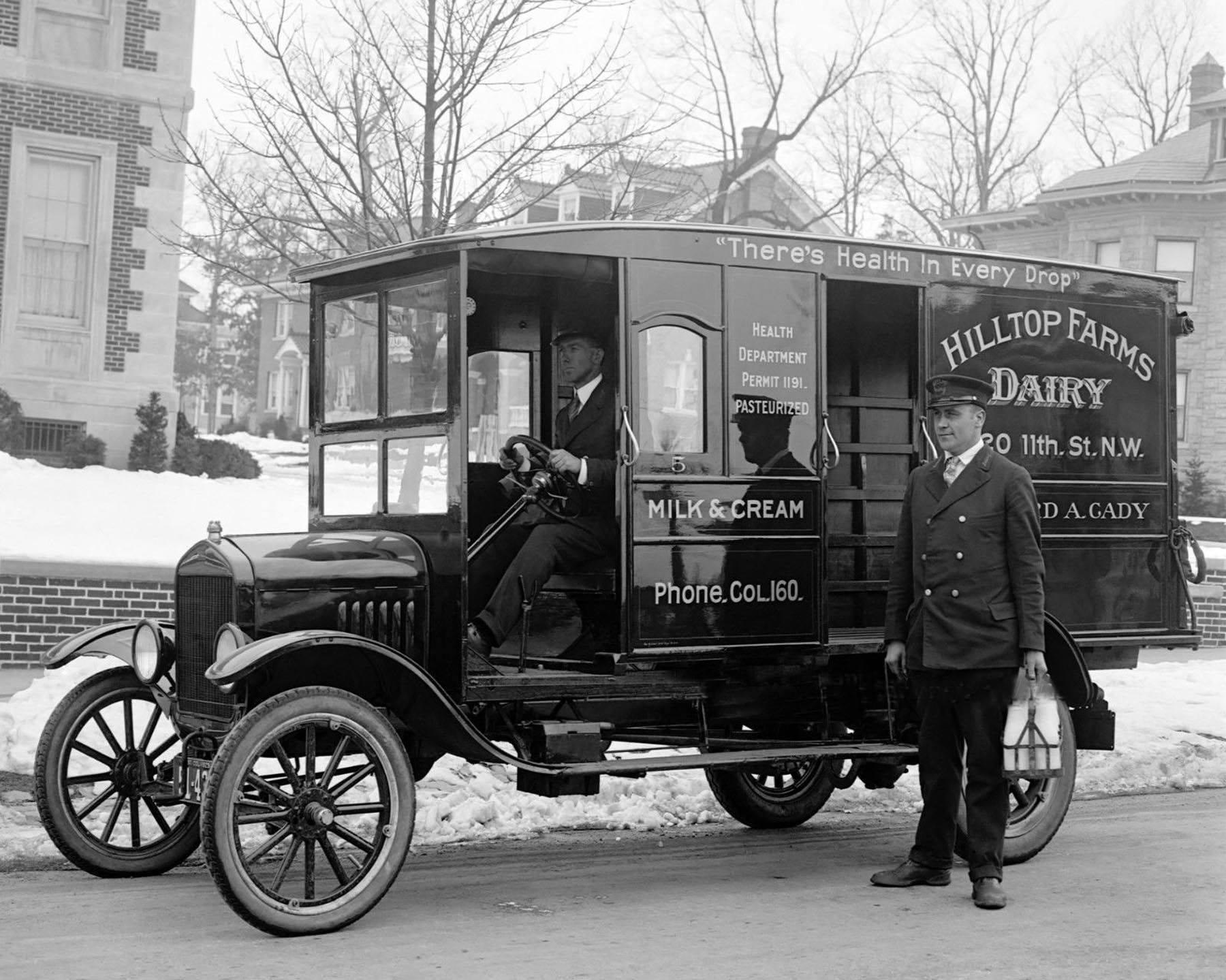 Доставка молока в США — бизнес с почти 250-летней историей. Считается, что он возник в Вермонте в 1785 году. Изначально молочники-милкмены возили (или носили) большие емкости с молоком, которое наливали в любую клиентскую тару — кувшины, ведра, банки и т. д.