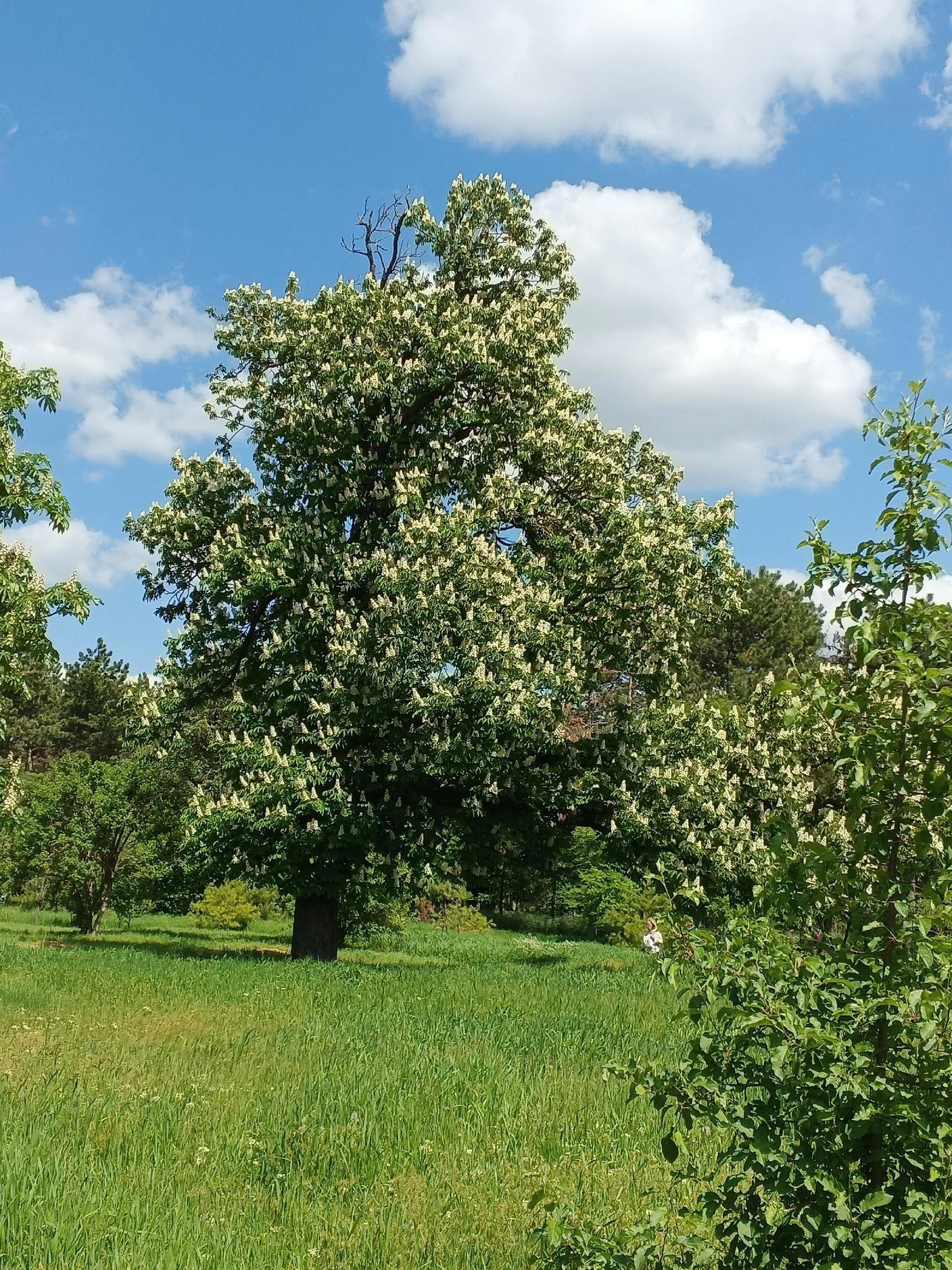 А кроме сирени поляну окружают каштаны.
