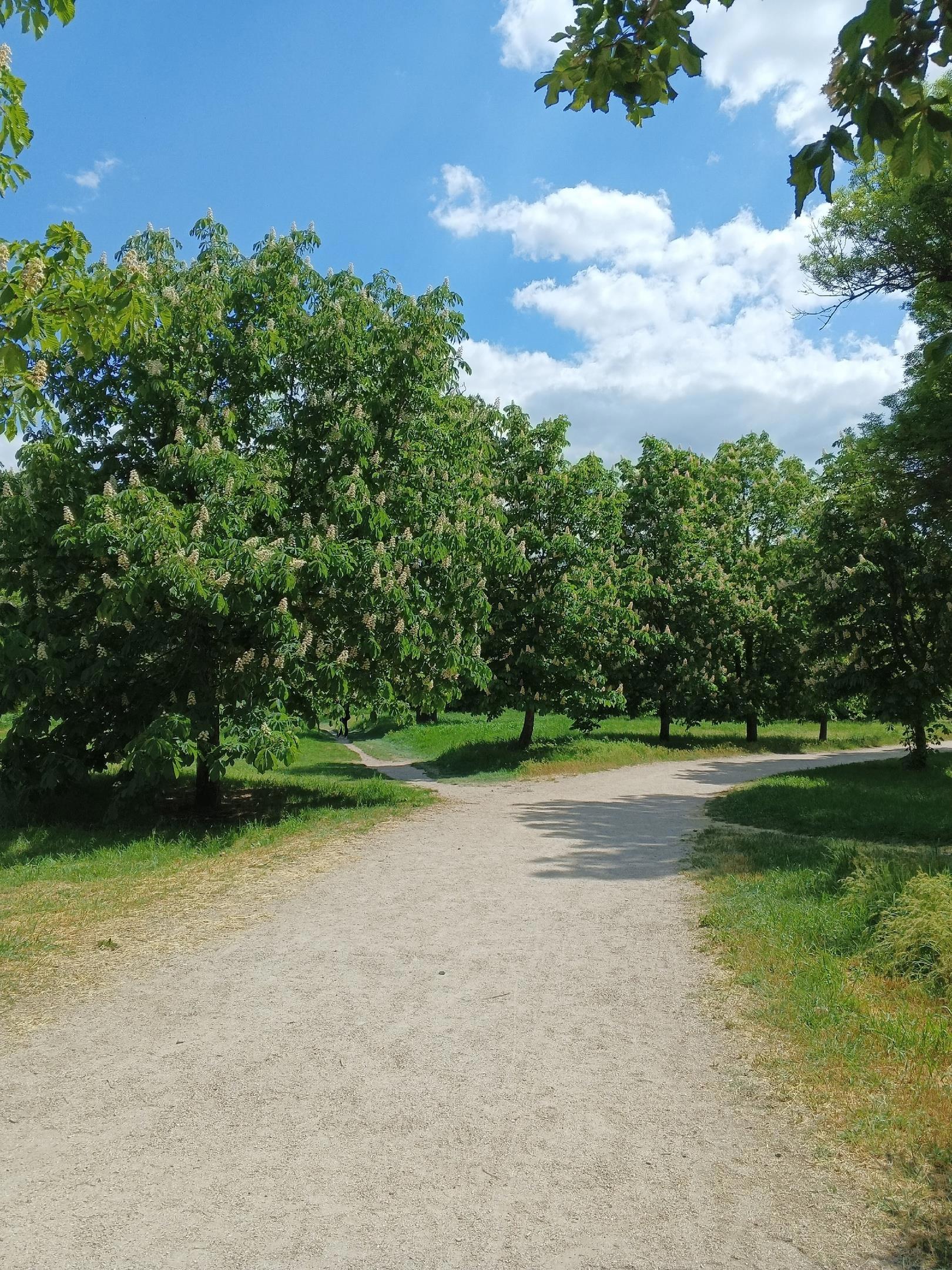 Много каштанов. Аллеи и дорожки в обрамлении каштанов.