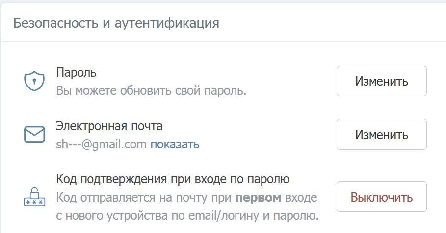 Теперь, если вход с нового устройства или браузера, на адрес почты будет отправлен одноразовый пароль. Один раз и всё. Больше (в течение года) он не будет запрашиваться.