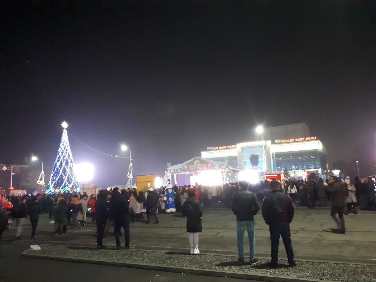 Жаңа жыл, в смысле Новый год, шымкентцы встречали на площади Аль-Фараби концертом и салютом. С краю желающих катали на верблюдах, над головами летали дроны, с экрана над сценой граждан поздравлял казахский президент.