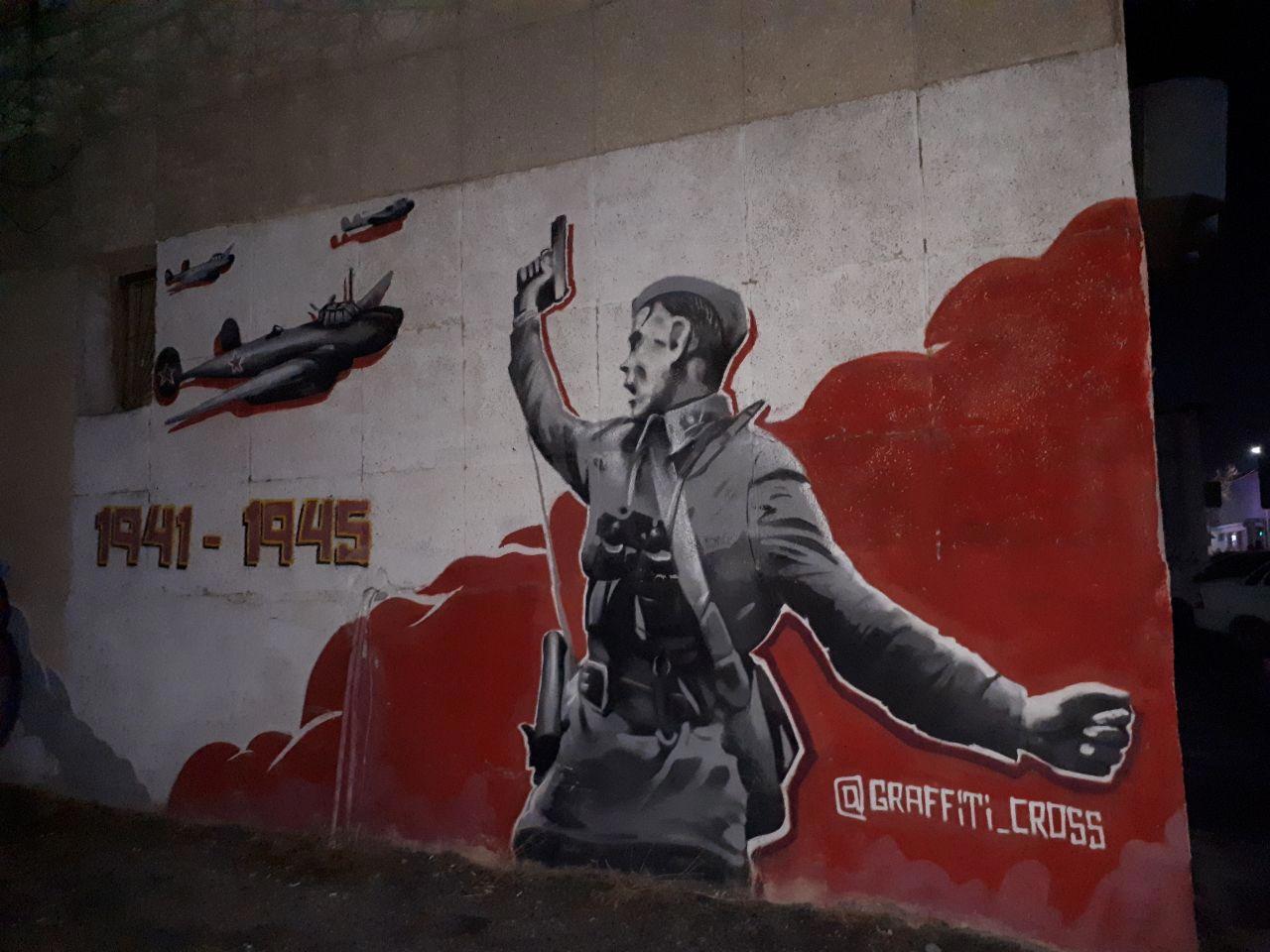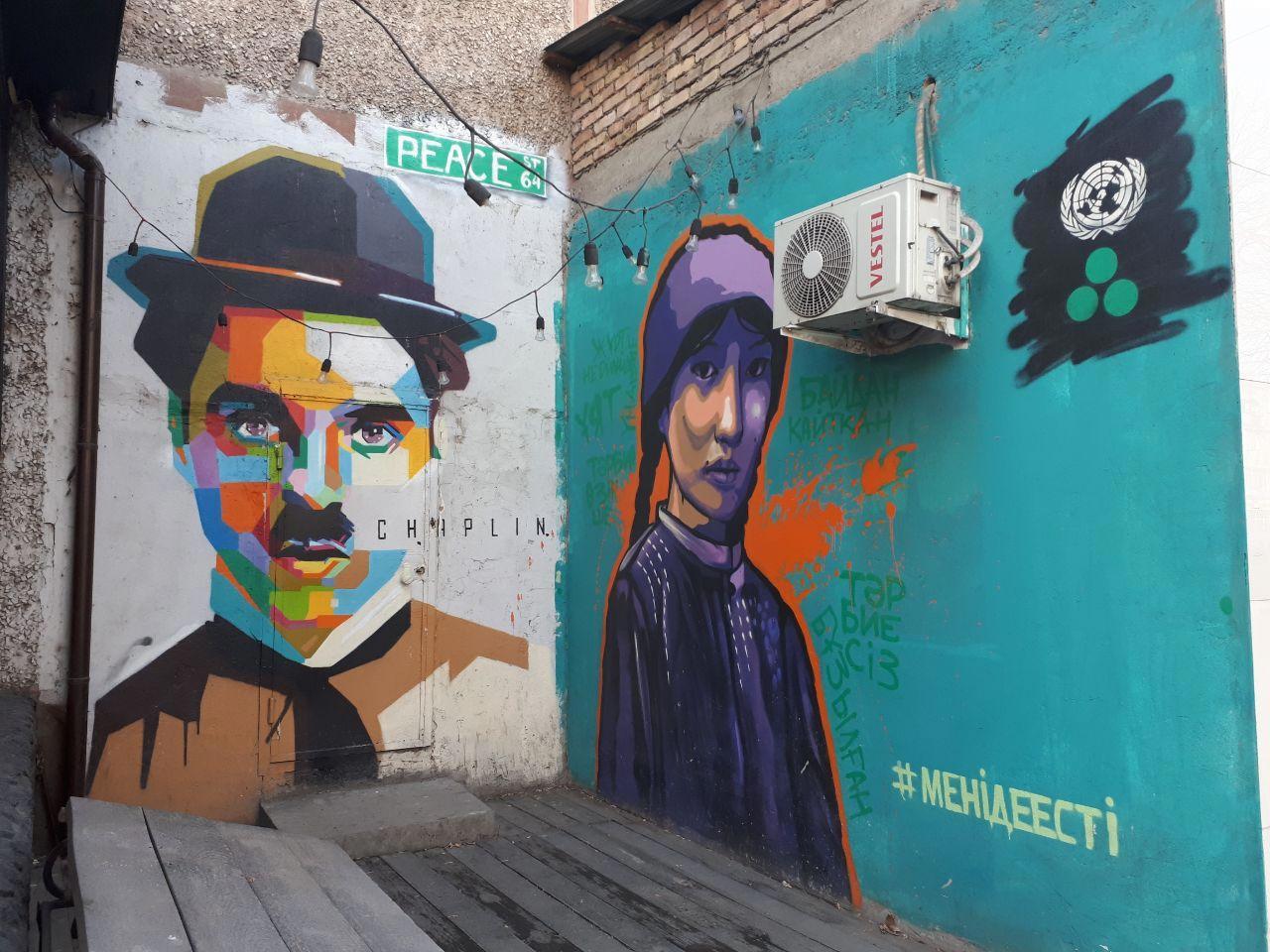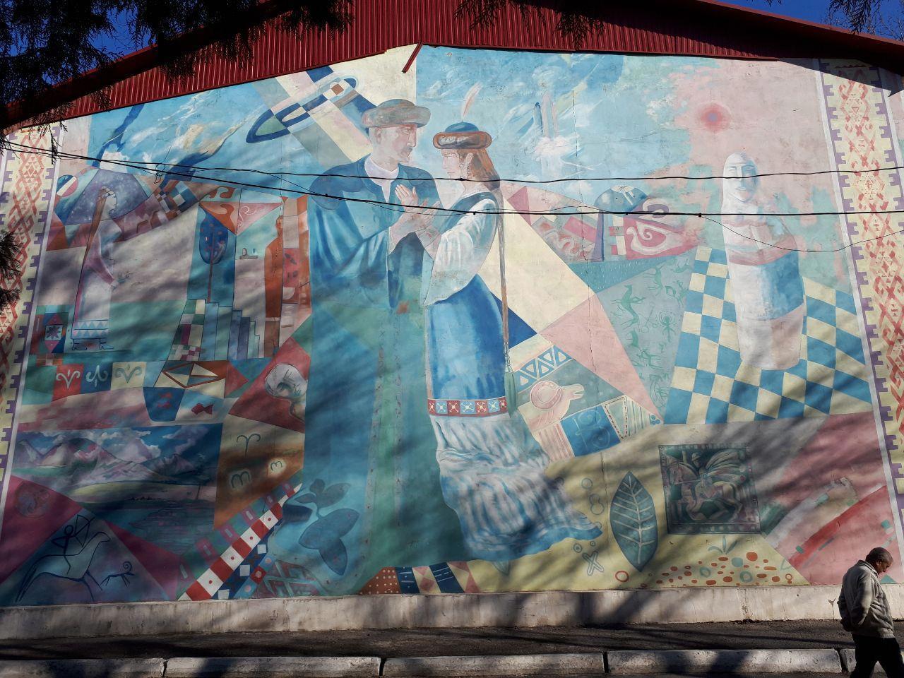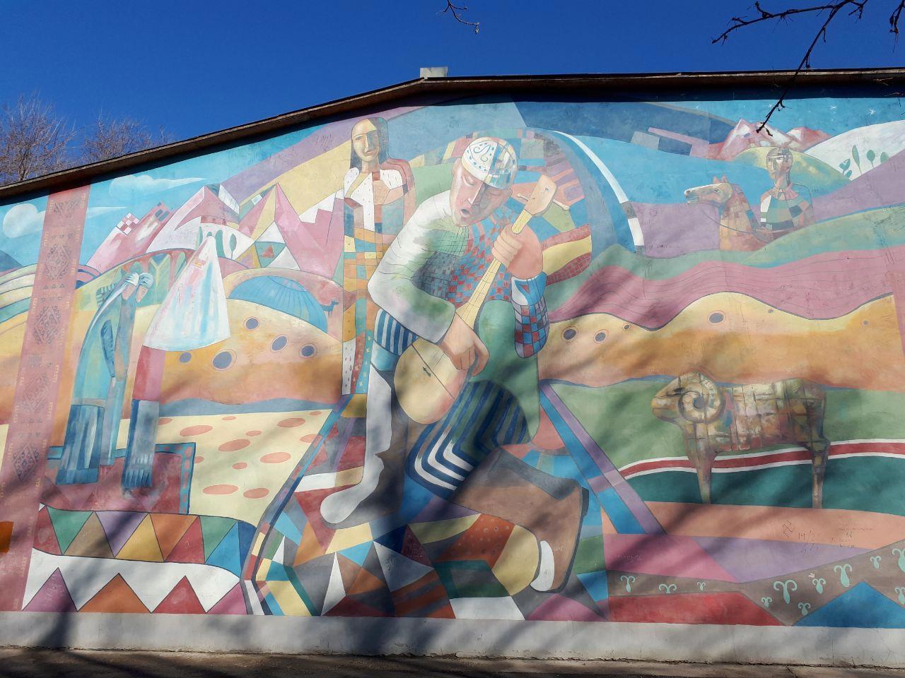 В городе много прекрасных граффити во всю торцевую стену домов. И опять же - в большинстве случаев на них изображены люди в национальной одежде.