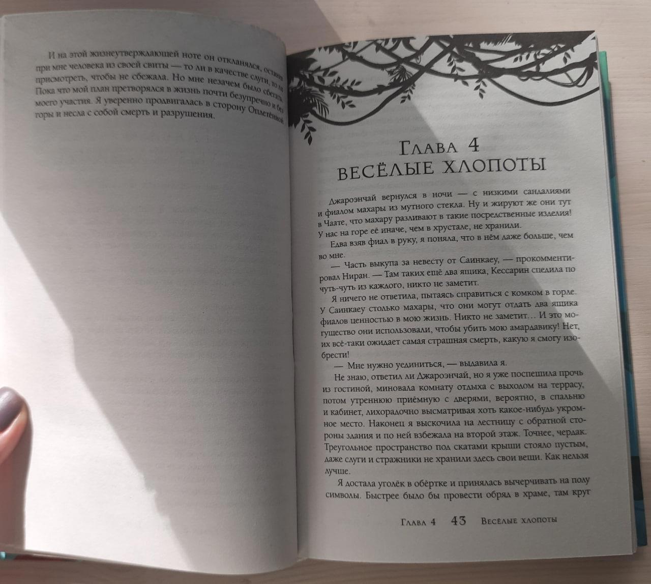 Обложка твёрдая, матовая с лаковым шрифтом. Внутри красиво оформленные шапки глав: