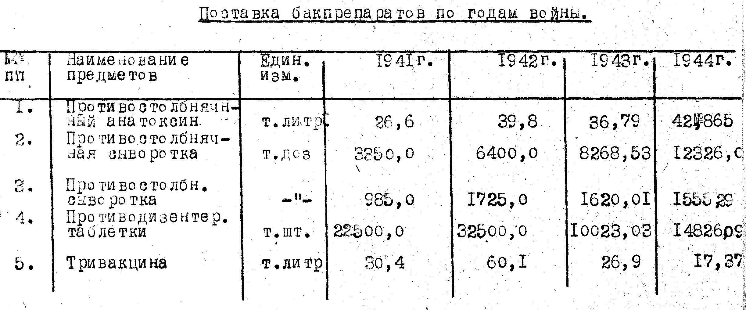 Количество полученных бакпрепаратов во время войны видно из следующей таблицы: