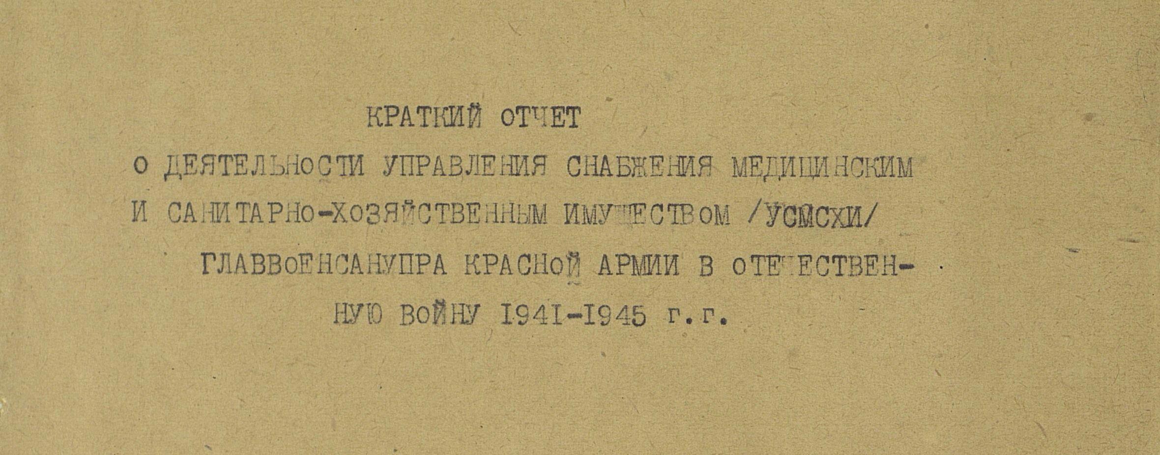 Темой сегодняшнего разговора будет краткий отчёт о деятельности Управления снабжения медицинским и санитарно-хозяйственным имуществом (УСМСХИ) Главвоенсанупра Красной Армии в Великую Отечественную войну.