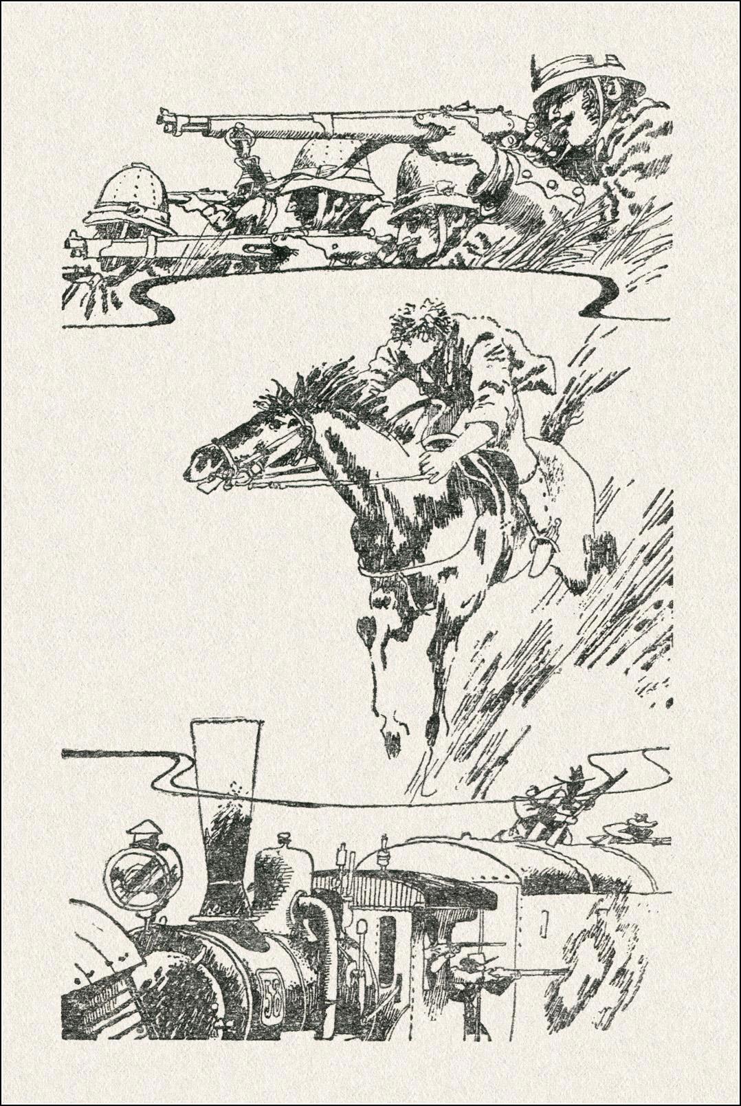 Тем, собственно, как и ярко прописанными реалиями новых войн, книжка брала даже взрослых. Автор, словами героев, явно переживал о судьбах будущих войн и их участников, осознанно полагая - вместе с окончившейся эпохой красных мундиров кончина ждёт остатки былинного рыцарского благородства. Магазинные винтовки, казнозарядные скорострельные орудия, пулемёты с картечницами Гатлинга и даже бронепоезда, такова реальность нового века, вступившего в эру мировых войн, где не всё можно решить рывком из последних сил или достижениями прогресса вроде велосипедов, с помощью которых пацанва доставляла донесения.