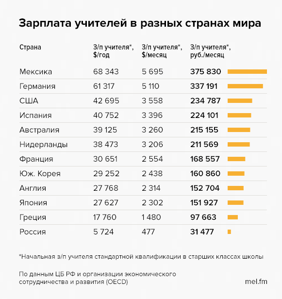 Напоследок 2 картинки отражающие уровень зарплат в учительстве в разных странах