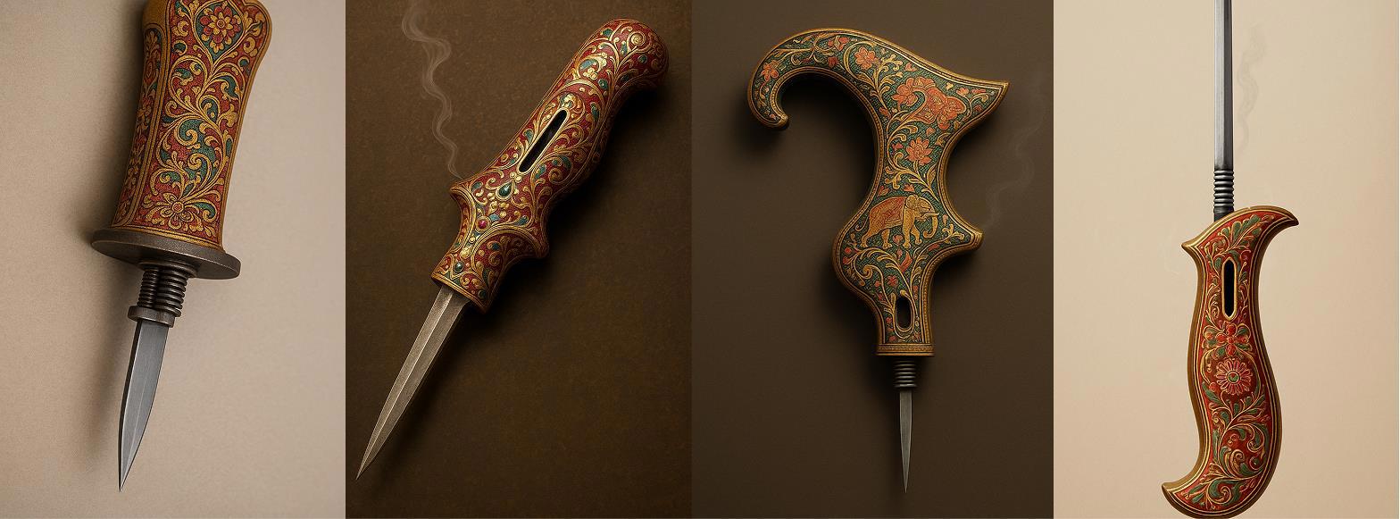 – Тайна тут сокрыта. Лишь только крепко рукоять стиснешь, как с другой стороны выскочит клинок малый, пружиной выталкиваемый.