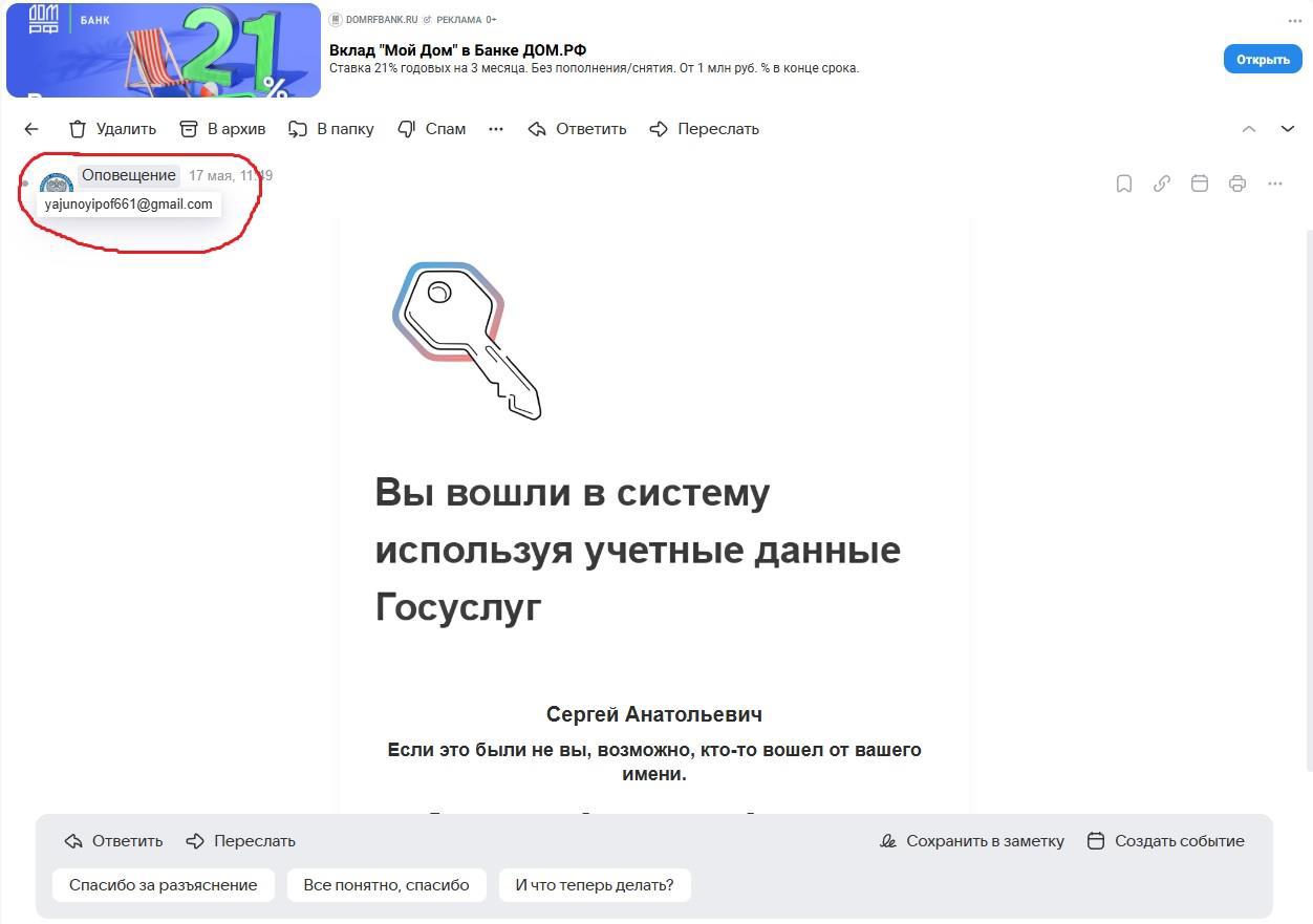 Ну хоть бы потрудились с выдумыванием адреса. Совсем обленились, раньше хоть звонили, из службы безопасности сбербанка, аж по защищённой линии, а теперь это предлагают делать нам самостоятельно. :)