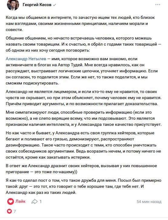 Автор: Александр НетылевНедавно один из знакомых с АТ, к сожалению, по определенным причинам не появляющийся тут уже пару месяцев, посвятил мне пост вконтакте. В силу природного тщеславия, делюсь)