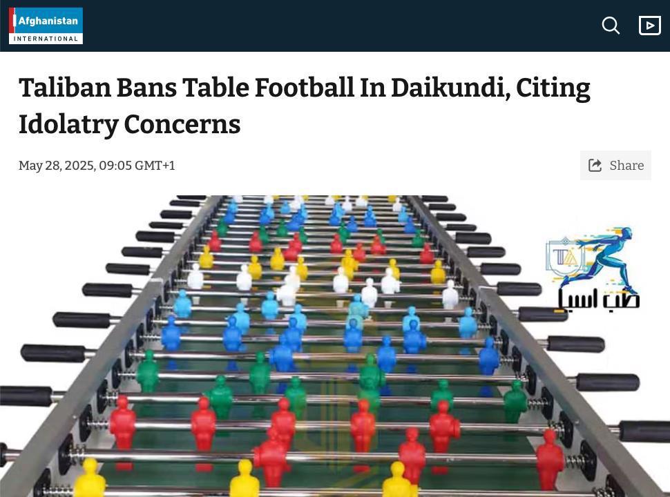 Талибы могут запретить настольный футбол в Афганистане из-за "идолопоклонства"! Правительство страны сочло фигурки игроков "изображением идолов", поклонение которым является одним из тягчайших грехов в исламе! Пока что талибы предписали срезать головы у фигурок! А как без голов играть-то? Хотя, сборной России может и помочь!