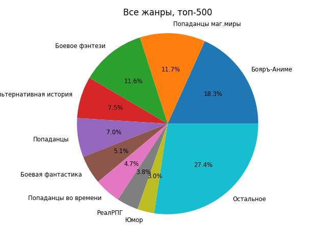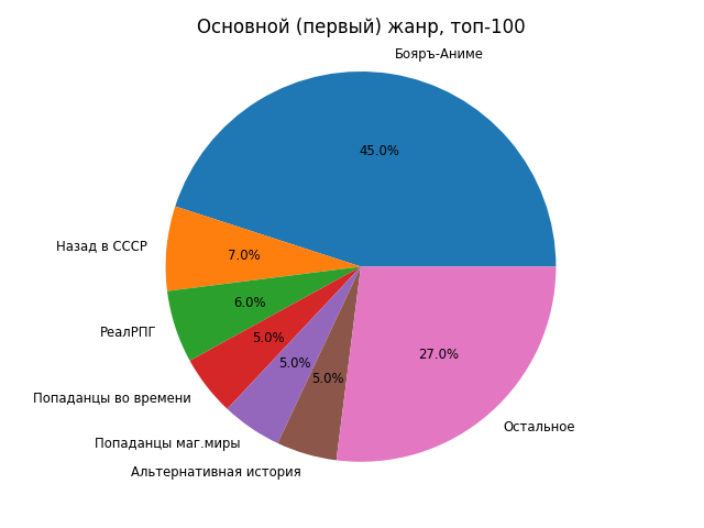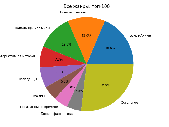 Информация собирается исходя из поисковой выдачи АТ, отсортированной по популярности за месяц: https://author.today/work/genre/all?rp=month&eg=-&fnd=false&page=1 (все фильтры были специально отключены).