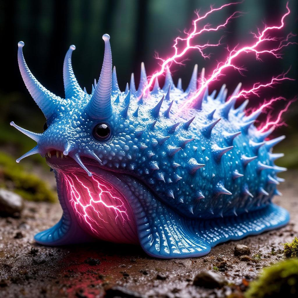 Позади нее всего-то в пяти шагах вырастал из травы огромный сизый слизень. Мутно-прозрачное тело в шипах и пупырышках подергивалось, между огромных рогов пробегали розовые молнии. Глаз у него, казалось, не имелось, зато была пасть, полная острых зубов-игл.