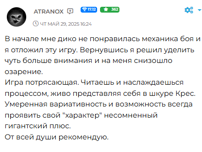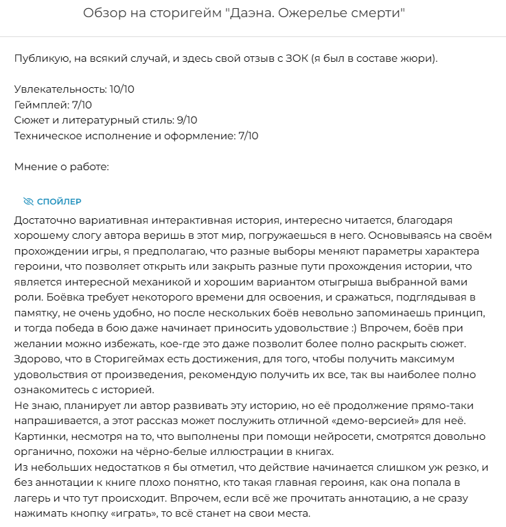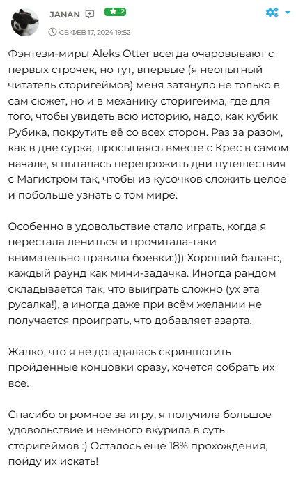 Ну и пользуясь случаем вкину пачку отзывов на историю.