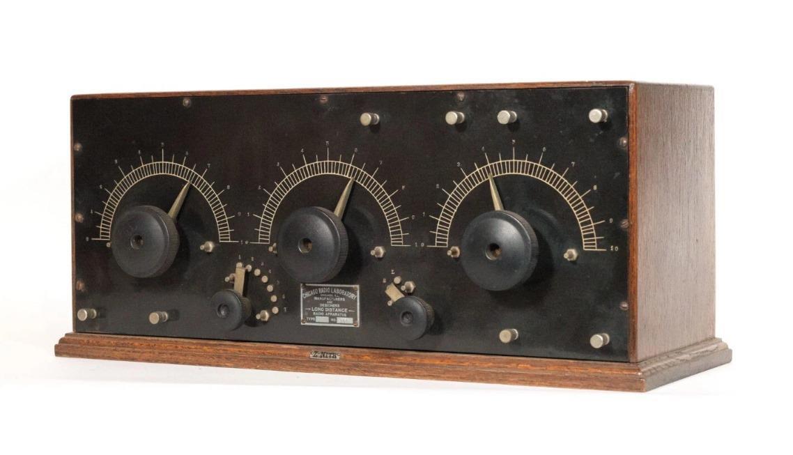 Второй аппарат помодернове, Zenith от Chicago Radio Labs, тяжеленький деревянный ящик, на передней панели хаотично раскиданы пять ручек настройки, индикатор включения и два гнезда для штекеров.