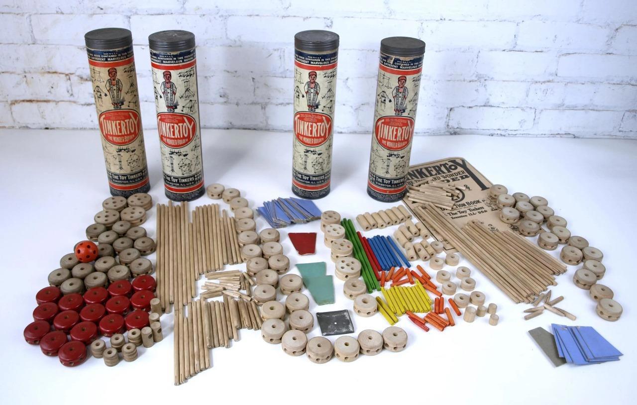 ...игрушки Джонни — мини-гольф с парой лунок, деревянный конструктор Tinkertoy и классический Meccano, с дырчатыми элементами и кучей винтов и гаечек к ним. Вместо моделек — фанерный аэроплан на резинке и жестяной танк с инерционной жужжалкой.