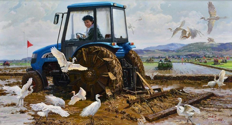 "Прилетающие птицы хорошего урожая". Художник Ко Чон Гиль, 2018 г. (107 г. чучхе).