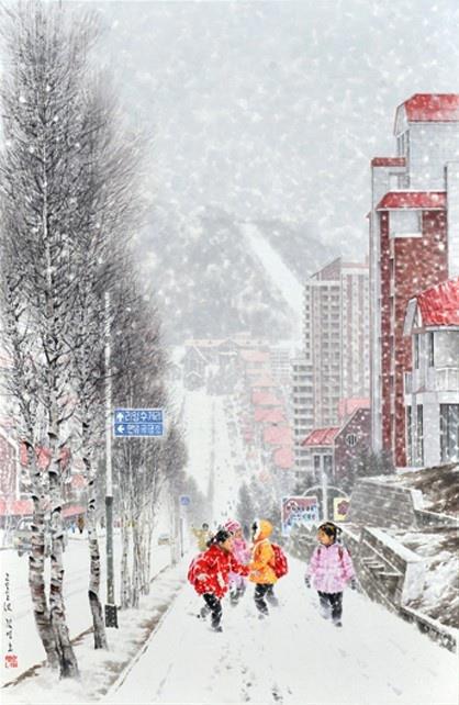"По дороге на работу". Художник Ча Мён Чхоль, 2014 г. (103 г. чучхе).
