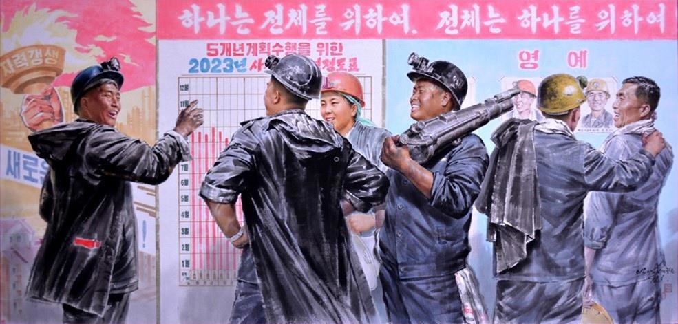 "Создание коллективных инноваций". Художник Джин Хо, 2023 г (112 г. чучхе).