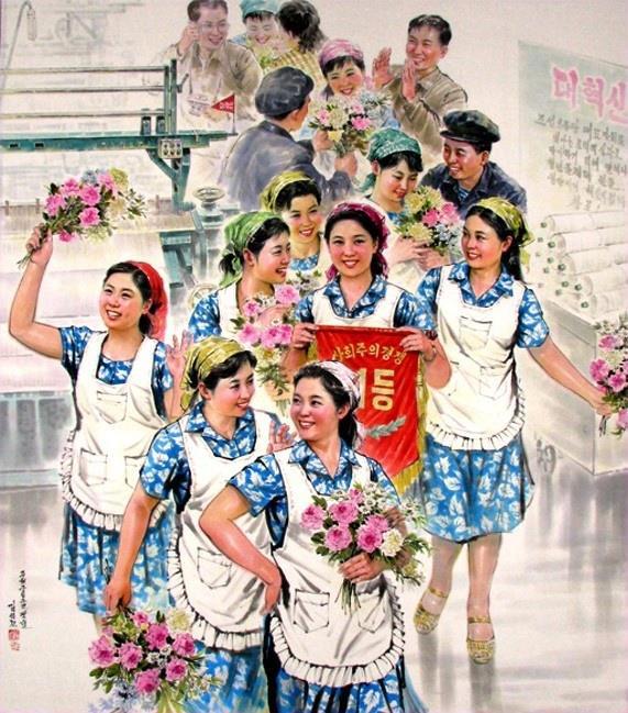 "Наши фабричные девчата". Художник Ким Сок Джин, 2010 г. (99 г. чучхе).
