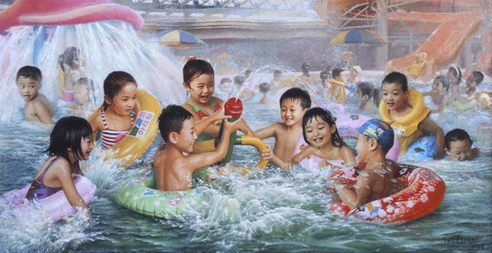 "В аквапарке, построенном с любовью". Художник Ри Нам Чоль, 2014 г. (103 г. чучхе).